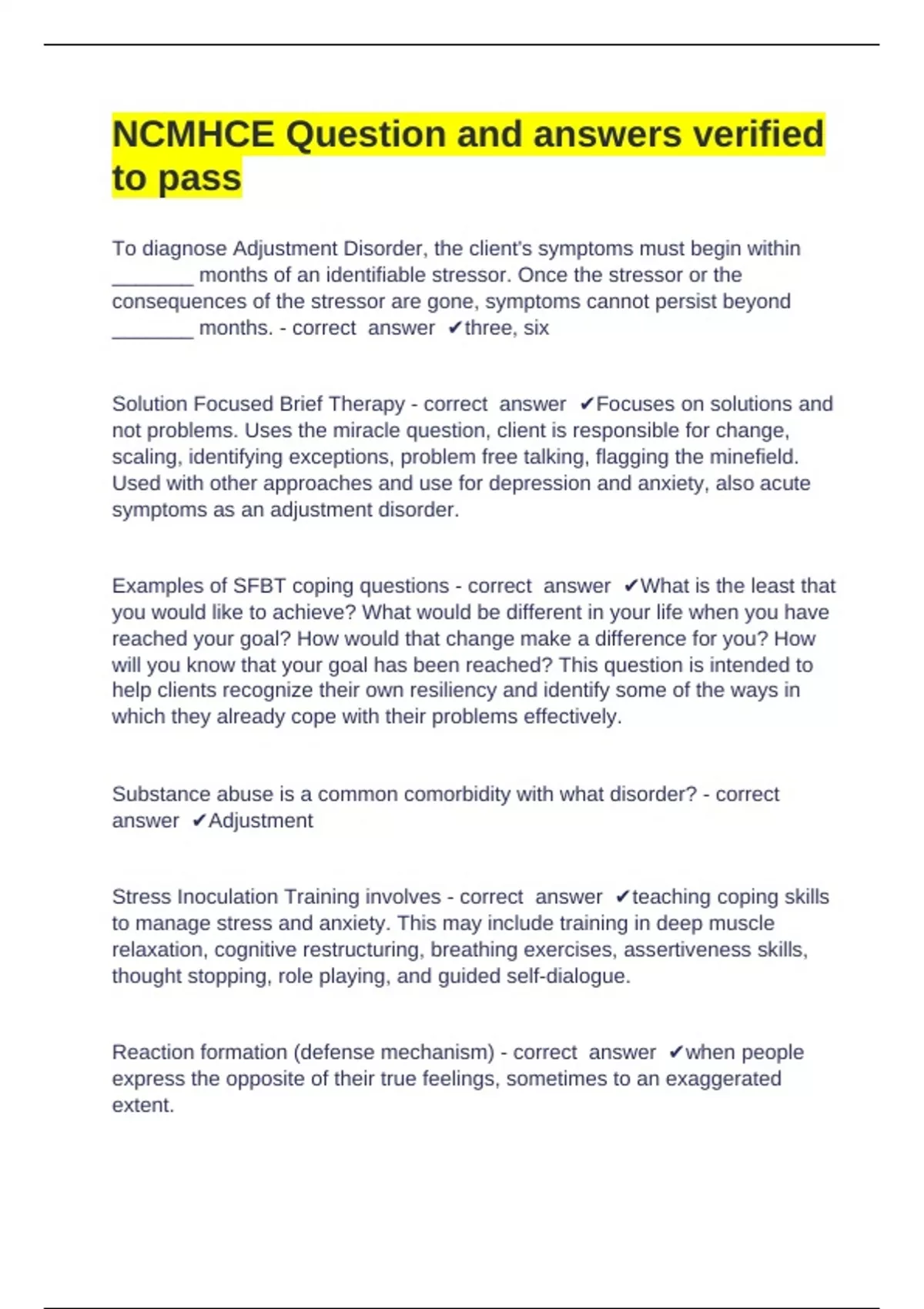 Stress Inoculation Training involves - correct answer ✔teaching coping skills
