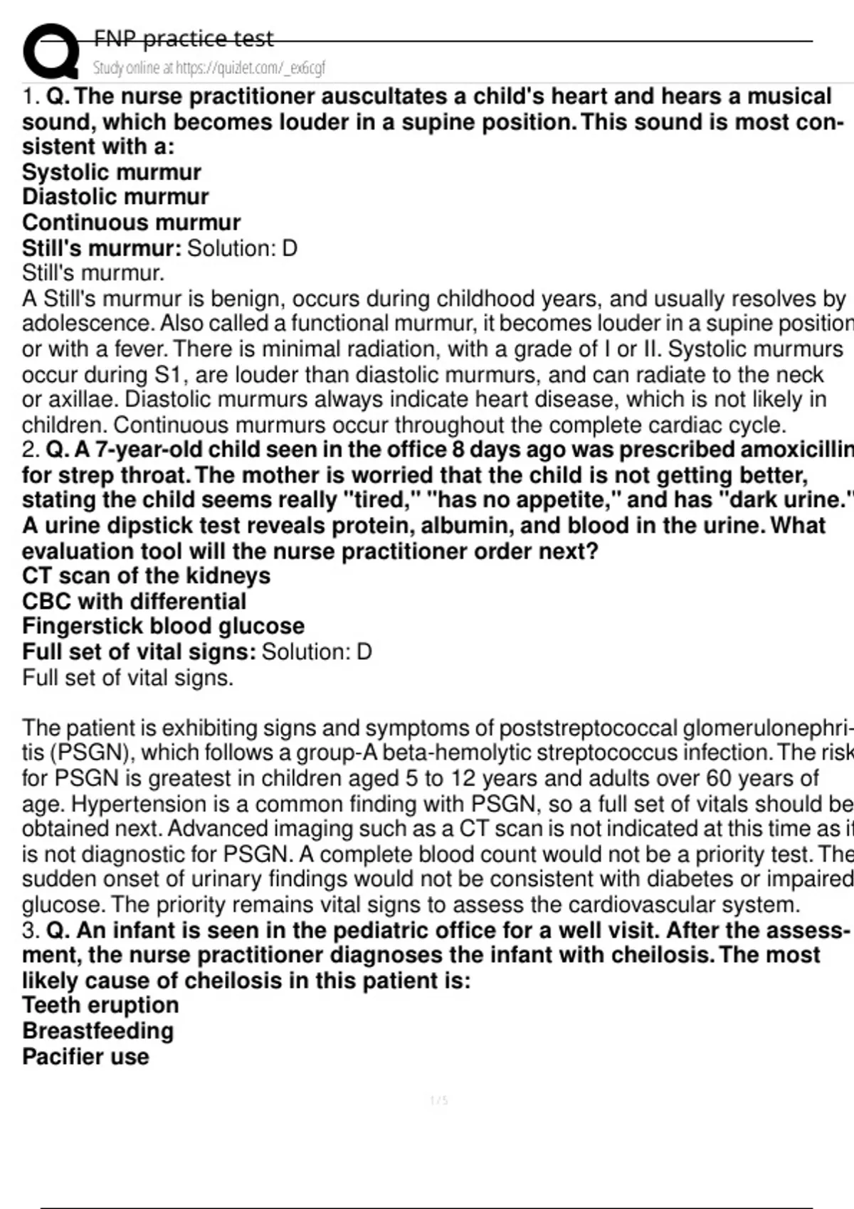 1. Q. The nurse practitioner auscultates a child's heart and hears a musical