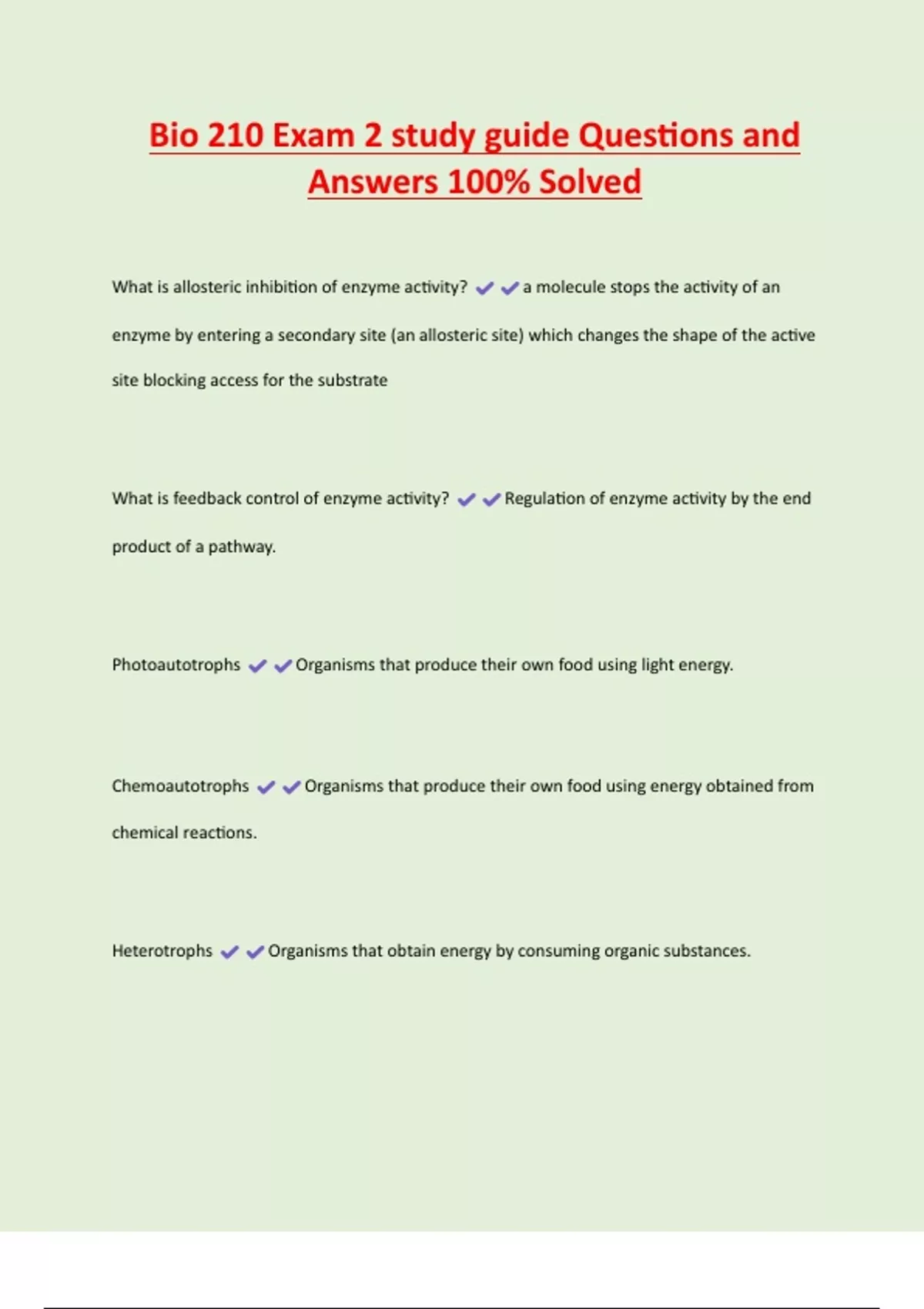 Bio 210 Exam 2 study guide Questions and Answers 100% Solved