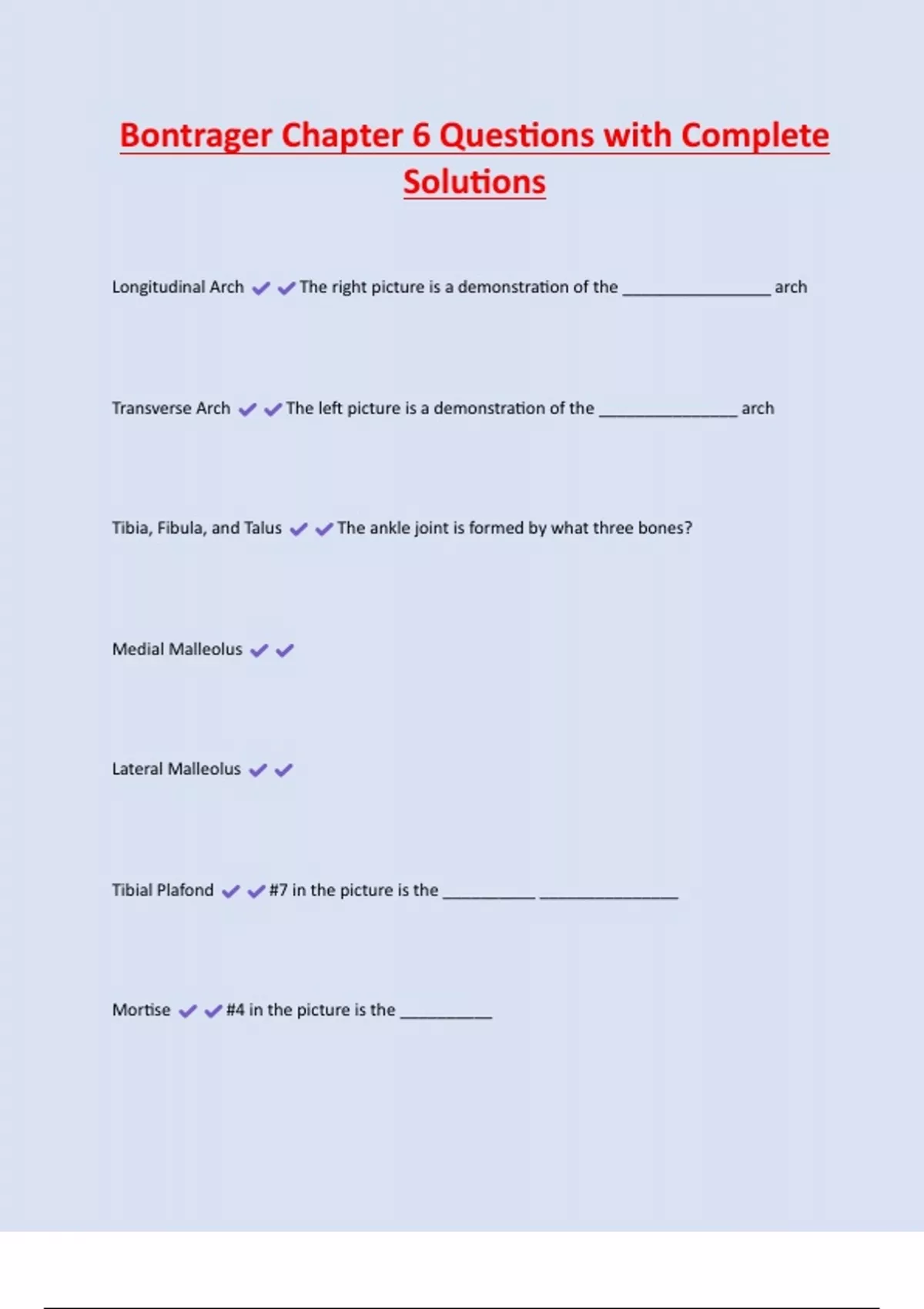 Tibia, Fibula, and Talus The ankle joint is formed by what three bones?