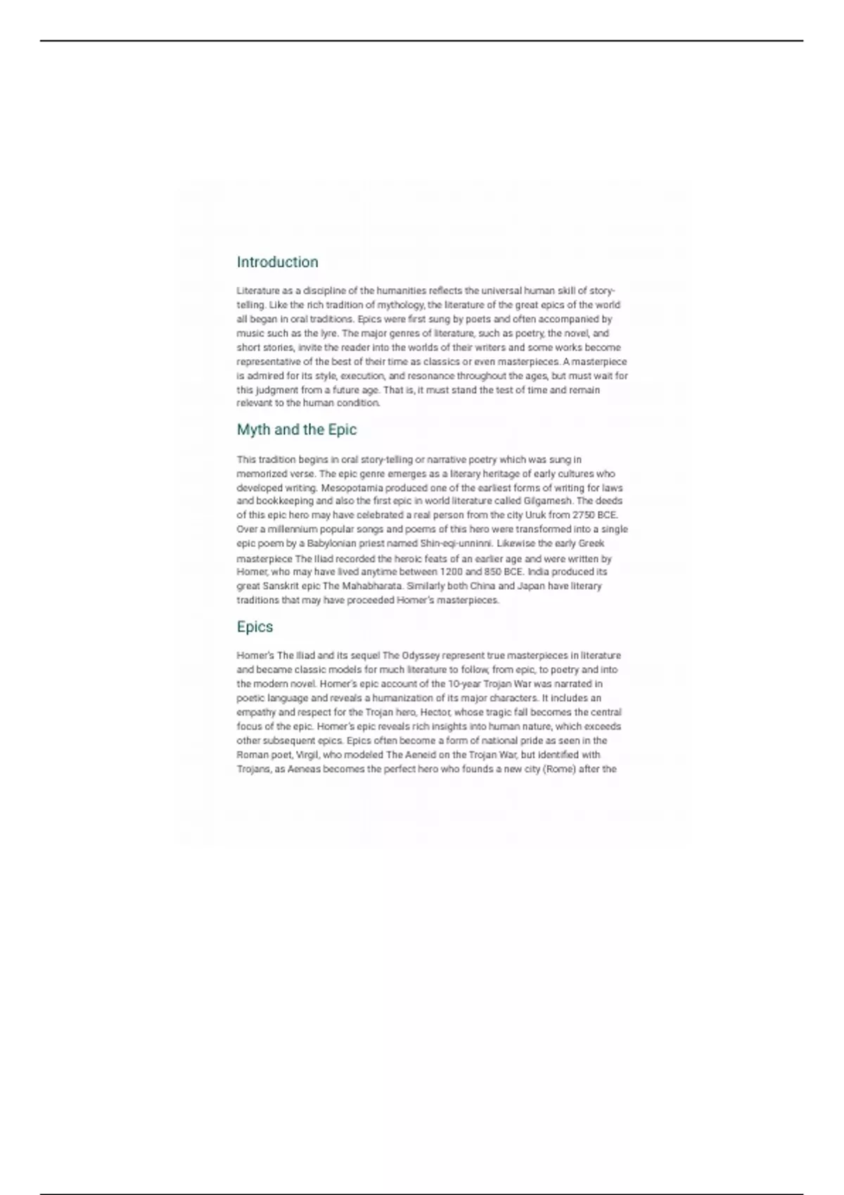 memorized verse. The epic genre emerges as a literary heritage of early cultures who