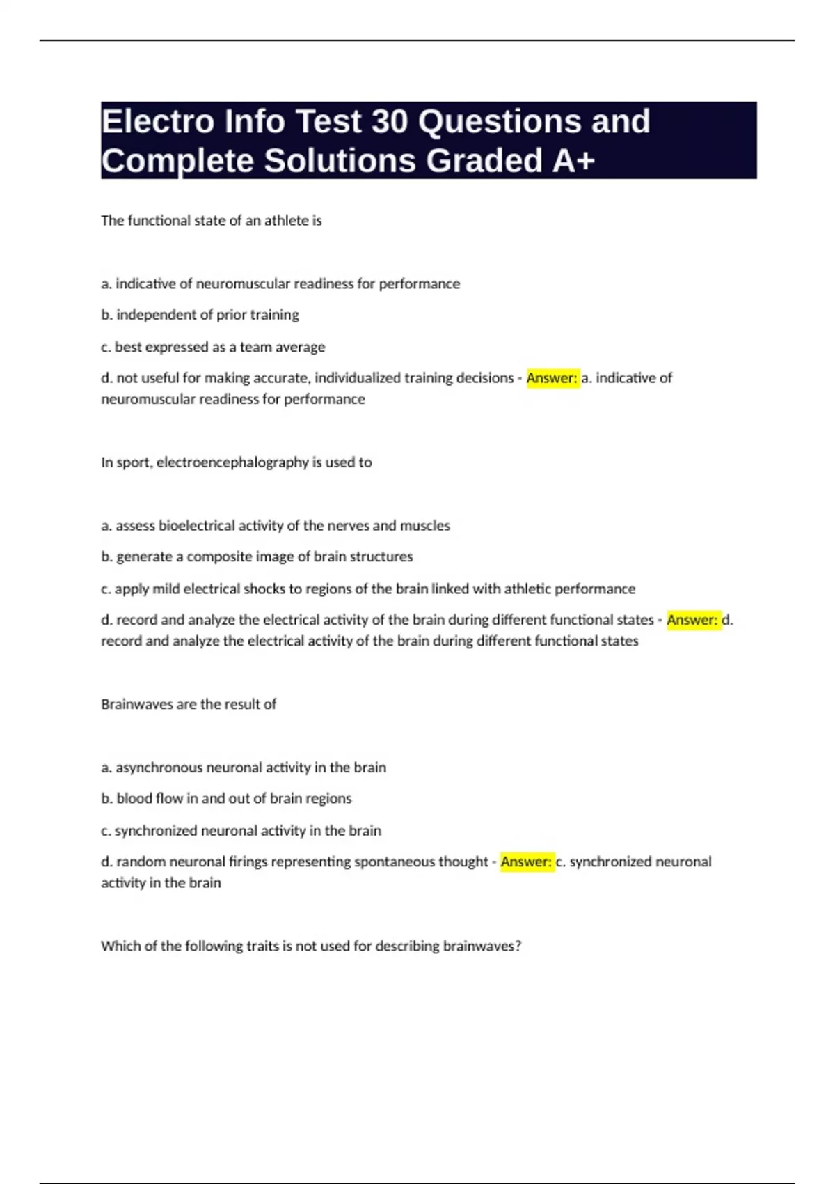 d. random neuronal firings representing spontaneous thought - Answer: c. synchronized neuronal