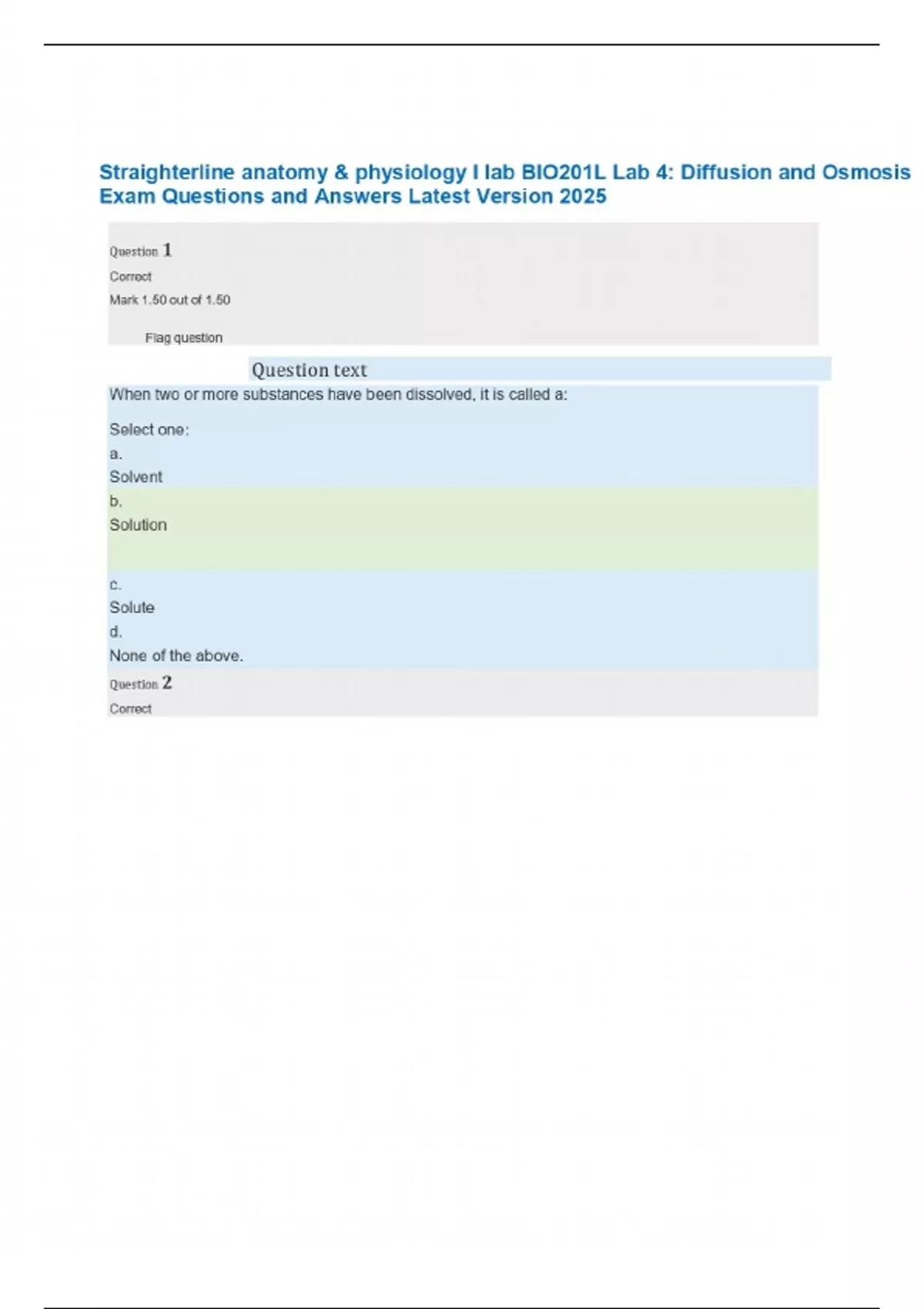 Straighterline anatomy & physiology I lab BIO201L Lab 4: Diffusion and Osmosis Exam Questions and Answers Latest Version 2025