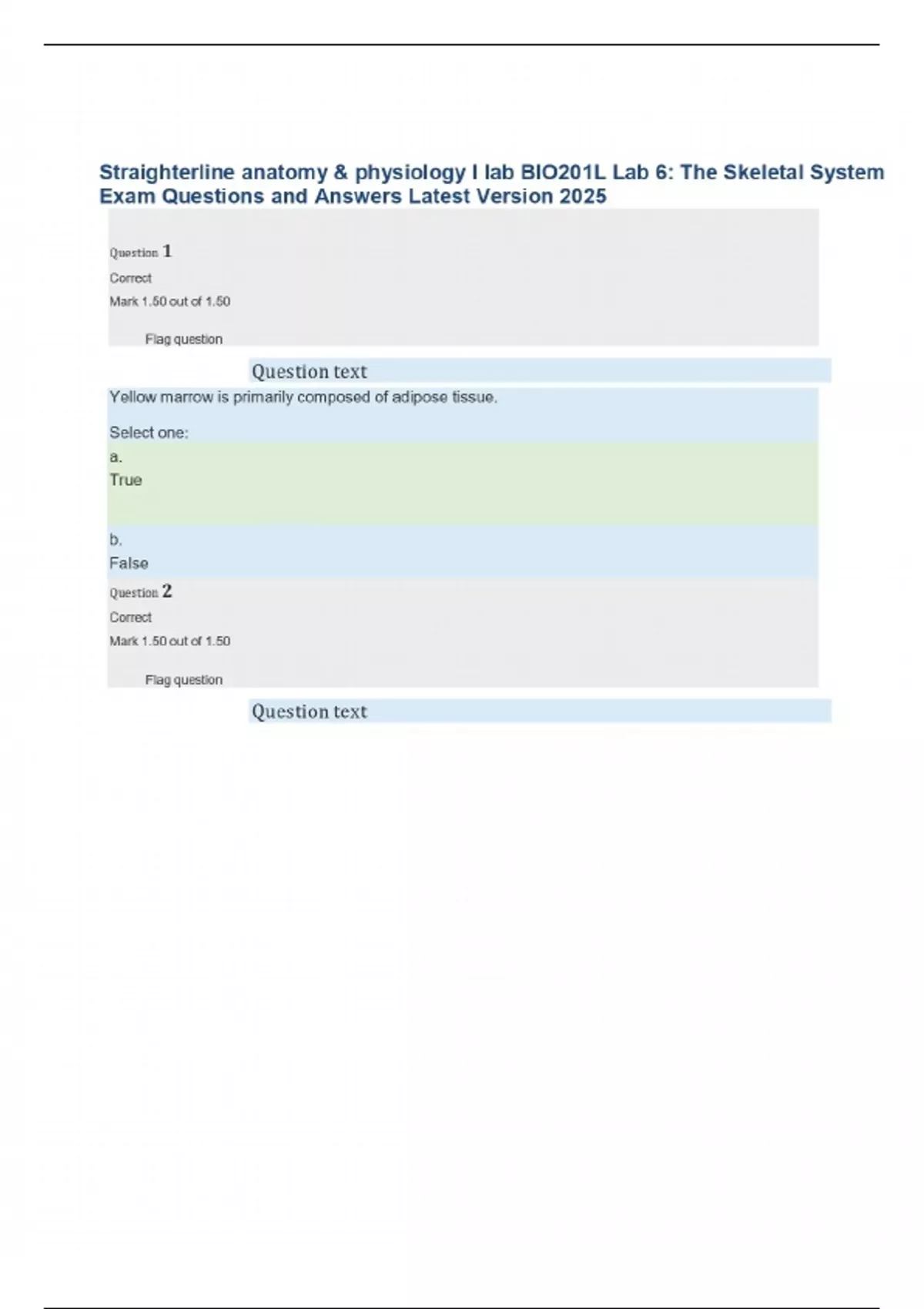 Straighterline anatomy & physiology I lab BIO201L Lab 6: The Skeletal System Exam Questions and Answers Latest Version 2025