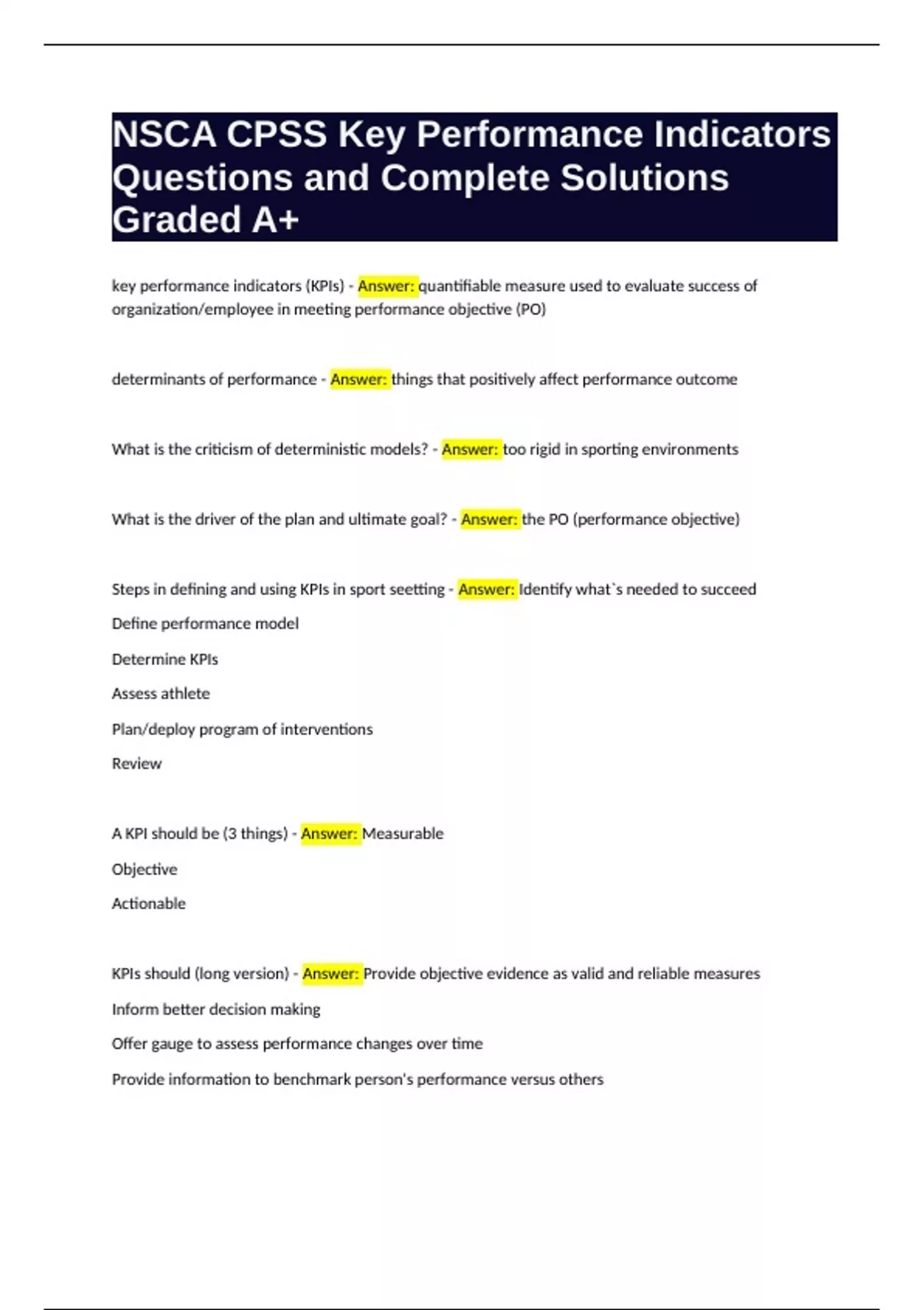 A KPI should be (3 things) - Answer: Measurable