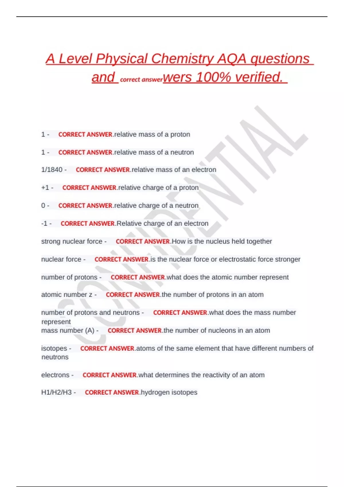 1- CORRECT ANSWER.relative mass of a neutron