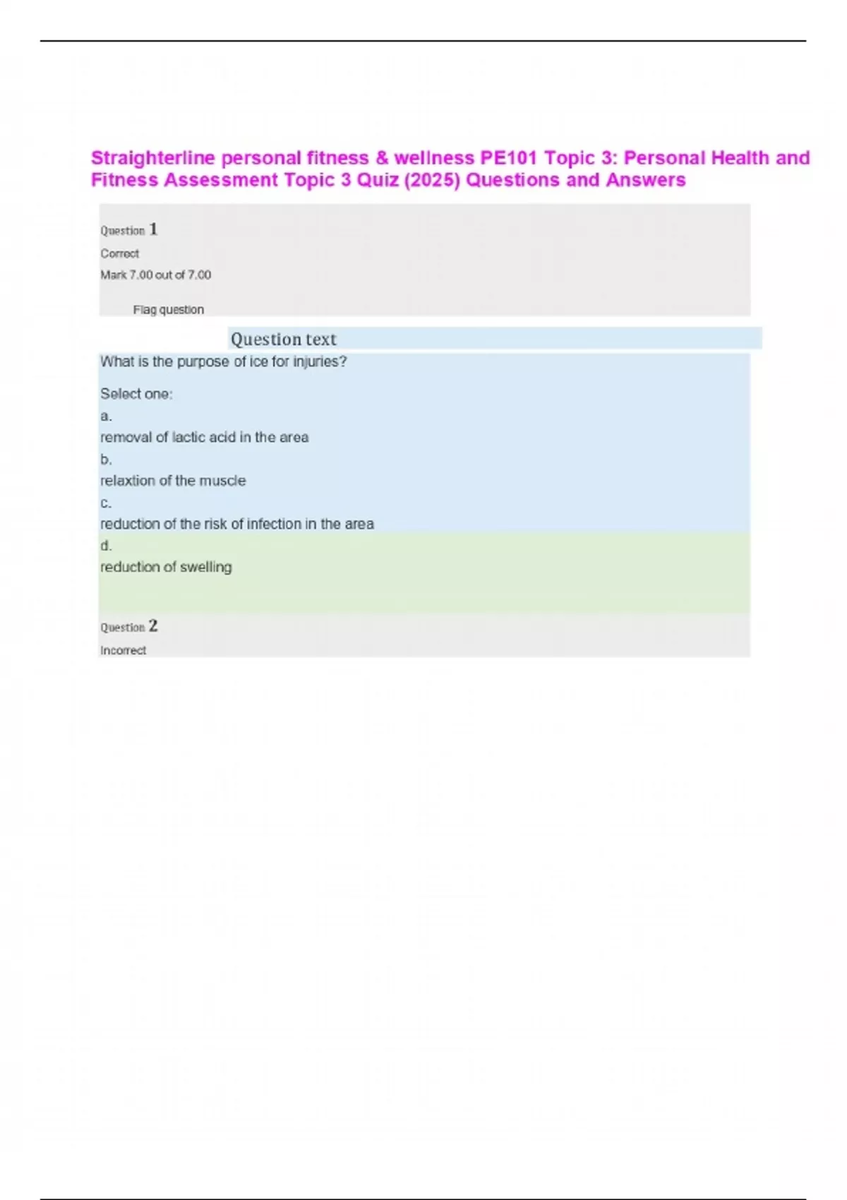 Straighterline personal fitness & wellness PE101 Topic 3: Personal Health and Fitness Assessment Topic 3 Quiz (2025) Questions and Answers