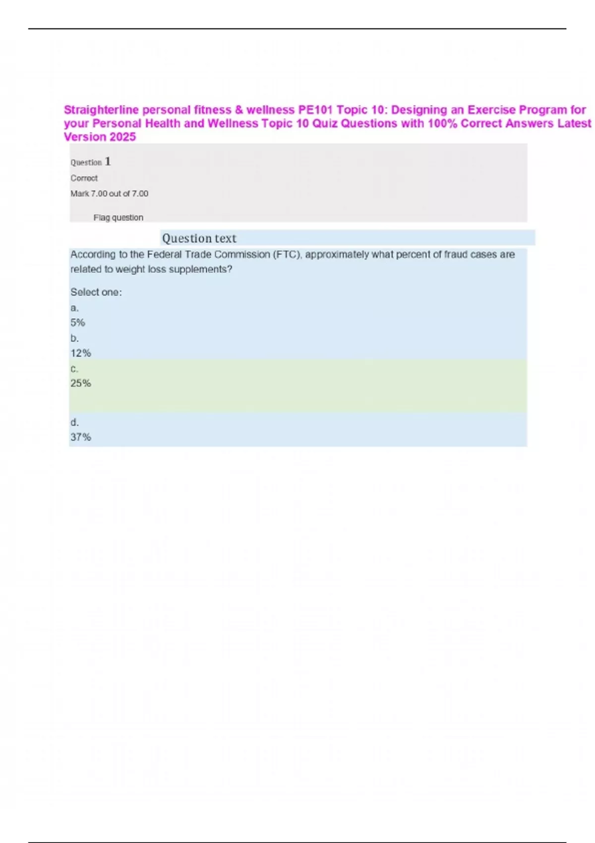 Straighterline personal fitness & wellness PE101 Topic 10: Designing an Exercise Program for your Personal Health and Wellness Topic 10 Quiz Questions with 100% Correct Answers Latest Version 2025