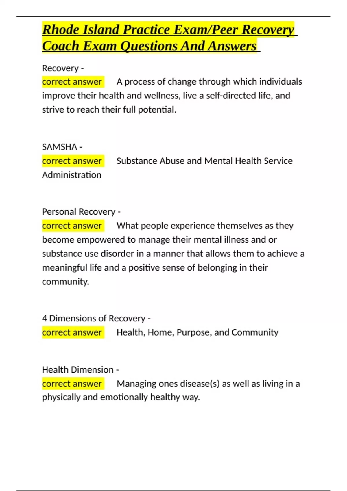 Rhode Island Practice Exam Peer Recovery Coach Exam Questions And A