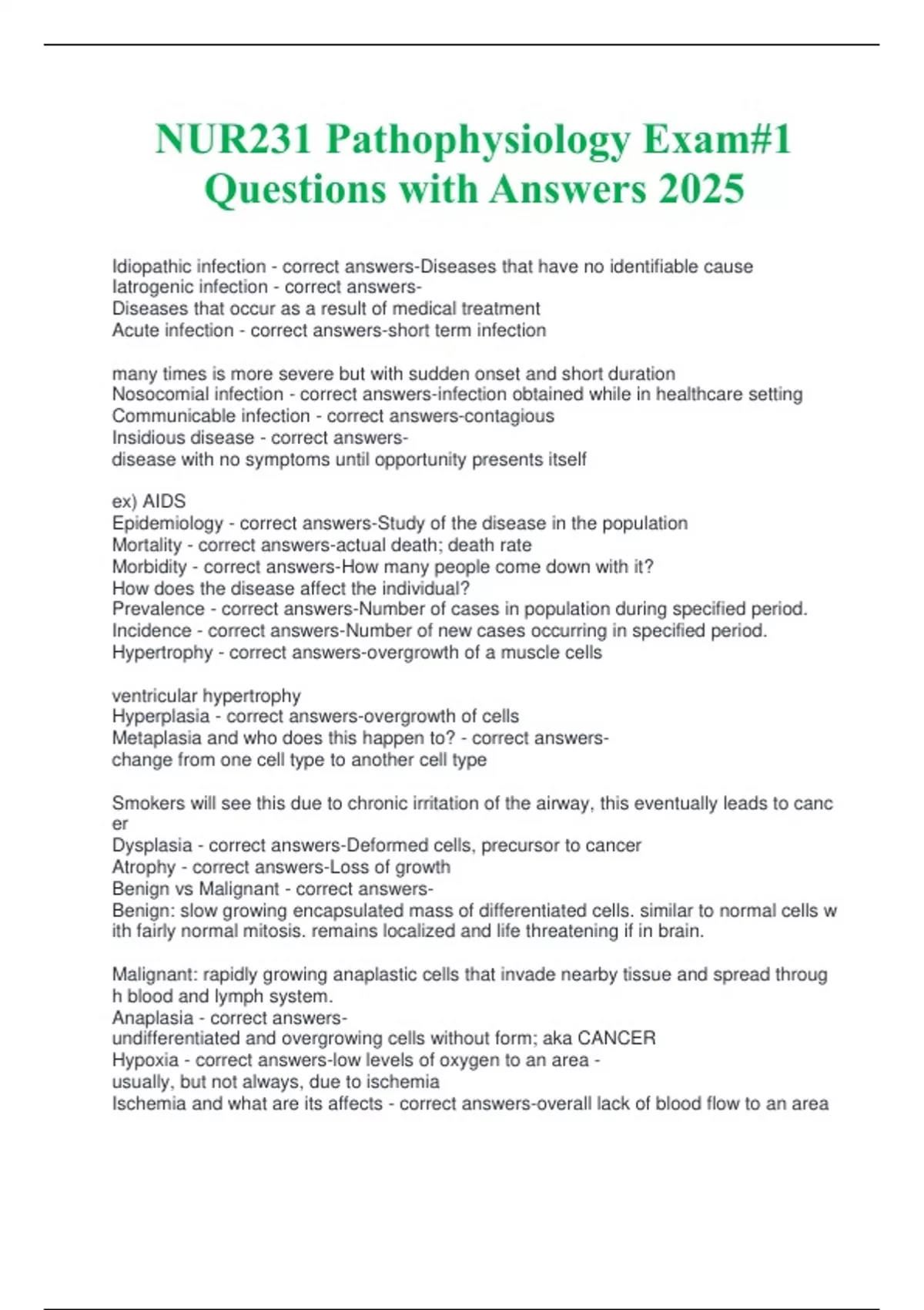 NUR231 Pathophysiology Exam-1 Questions with Answers 2025