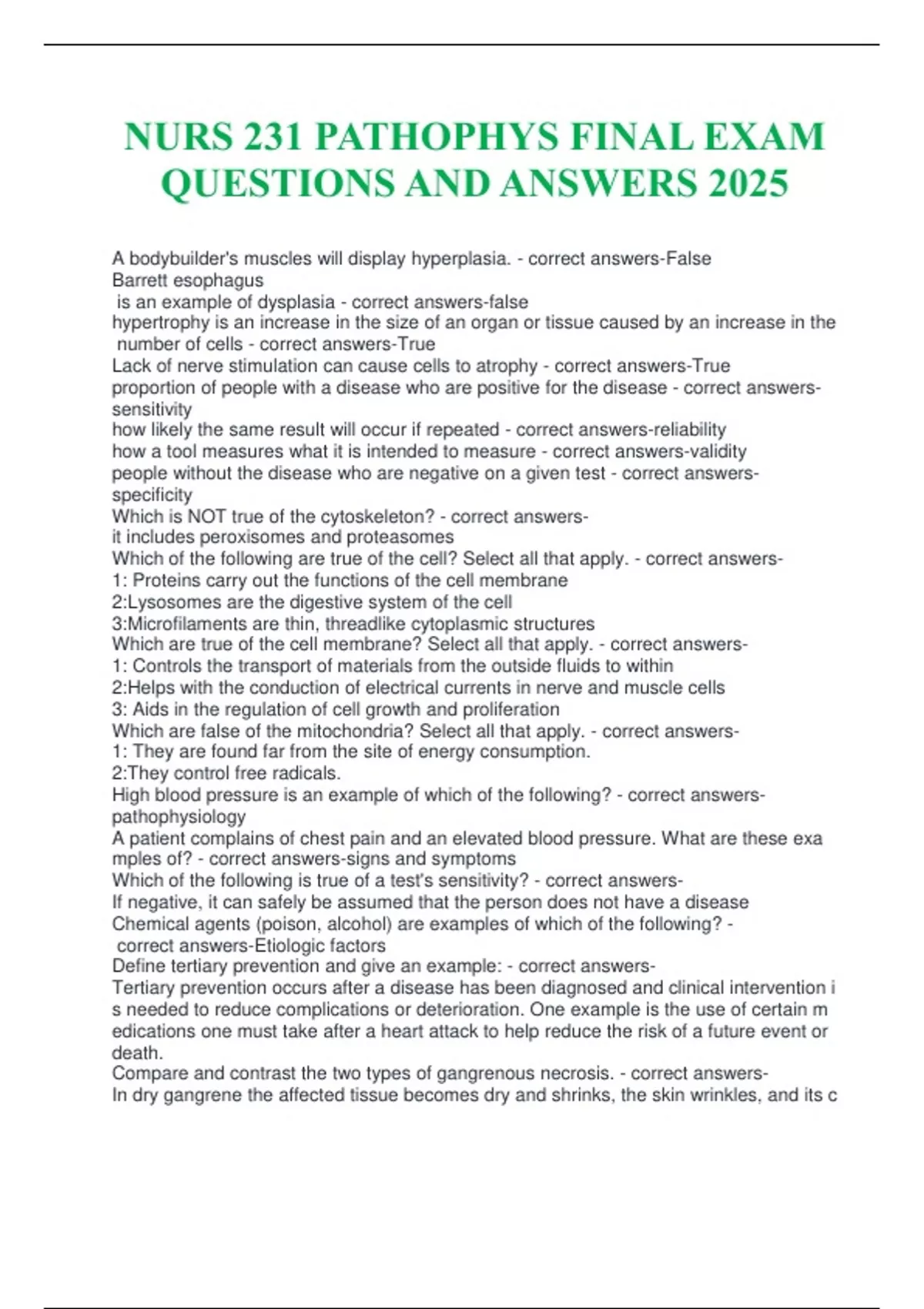NURS 231 PATHOPHYS FINAL EXAM