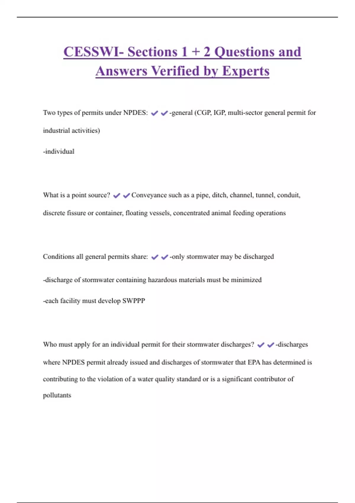 Two types of permits under NPDES: -general (CGP, IGP, multi-sector general permit for