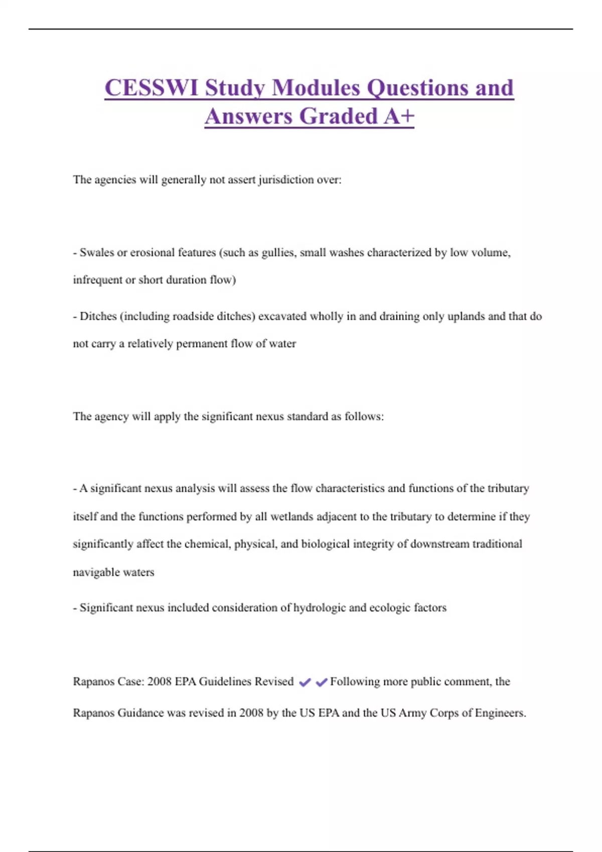 Rapanos Case: 2008 EPA Guidelines Revised Following more public comment, the