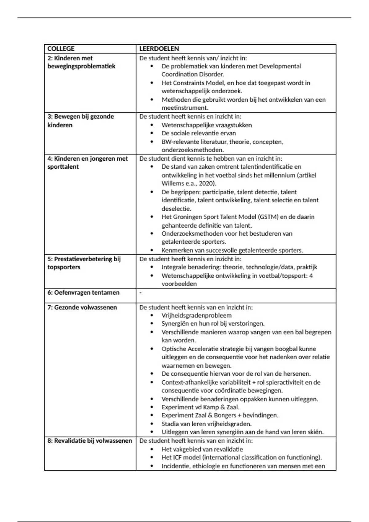 COLLEGE LEERDOELEN