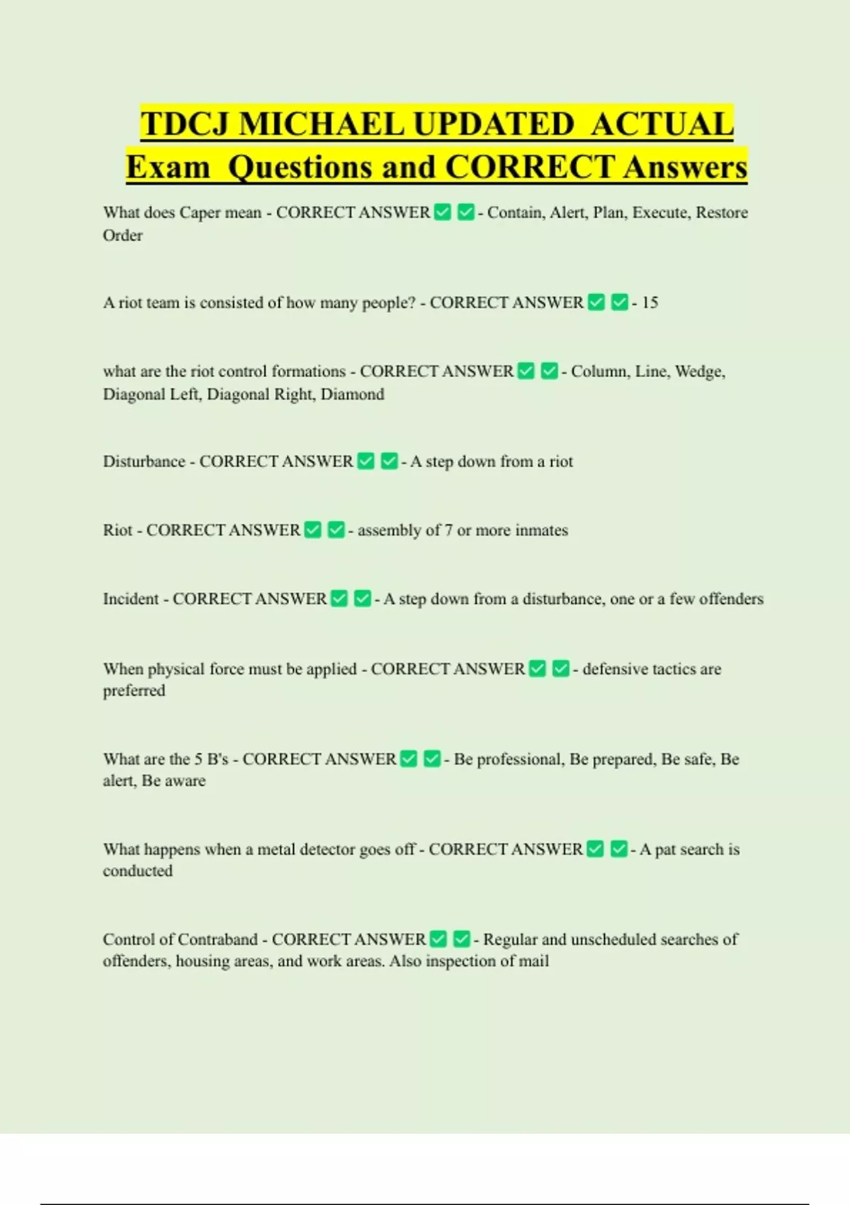Exam Questions and CORRECT Answers