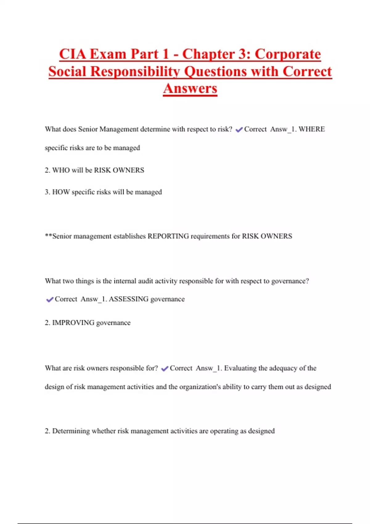 What does Senior Management determine with respect to risk? Correct Answ_1. WHERE