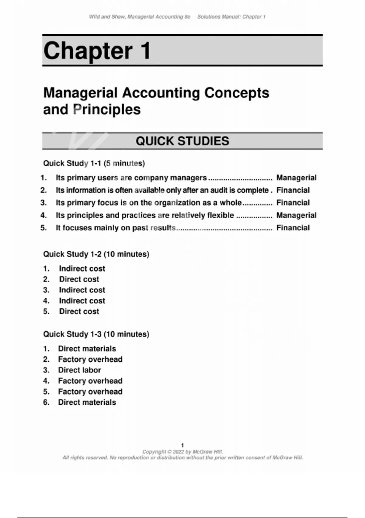 Solution Manual For Managerial Accounting 8th Edition By John Wild, Ken Shaw, Barbara Chiappetta