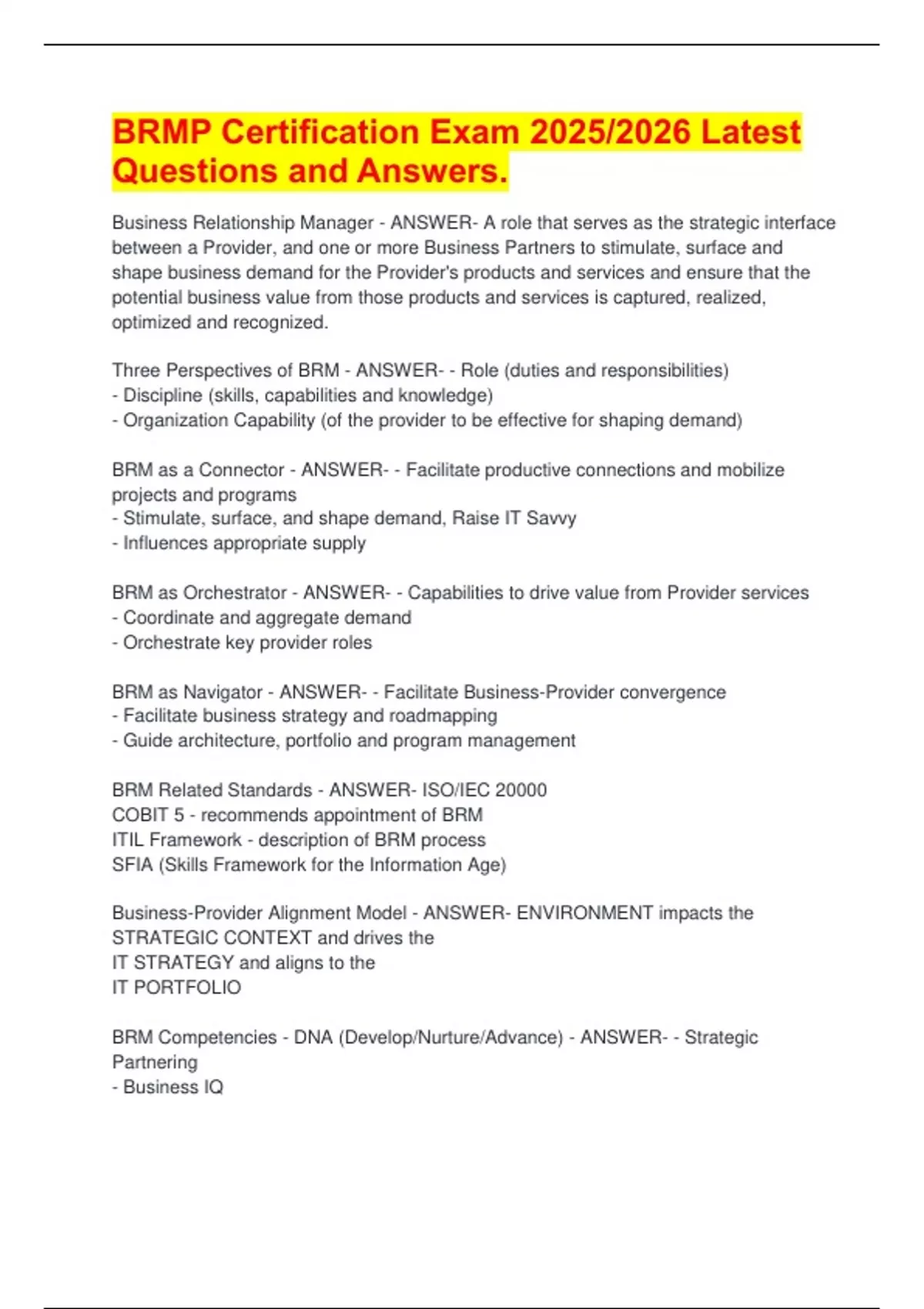 BRM Related Standards - ANSWER- ISO/IEC 20000