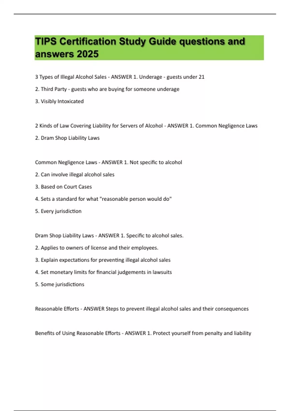 , Some Examples of Reasonable Efforts - ANSWER Follow safe serve guidelines.Call a cab Suggest