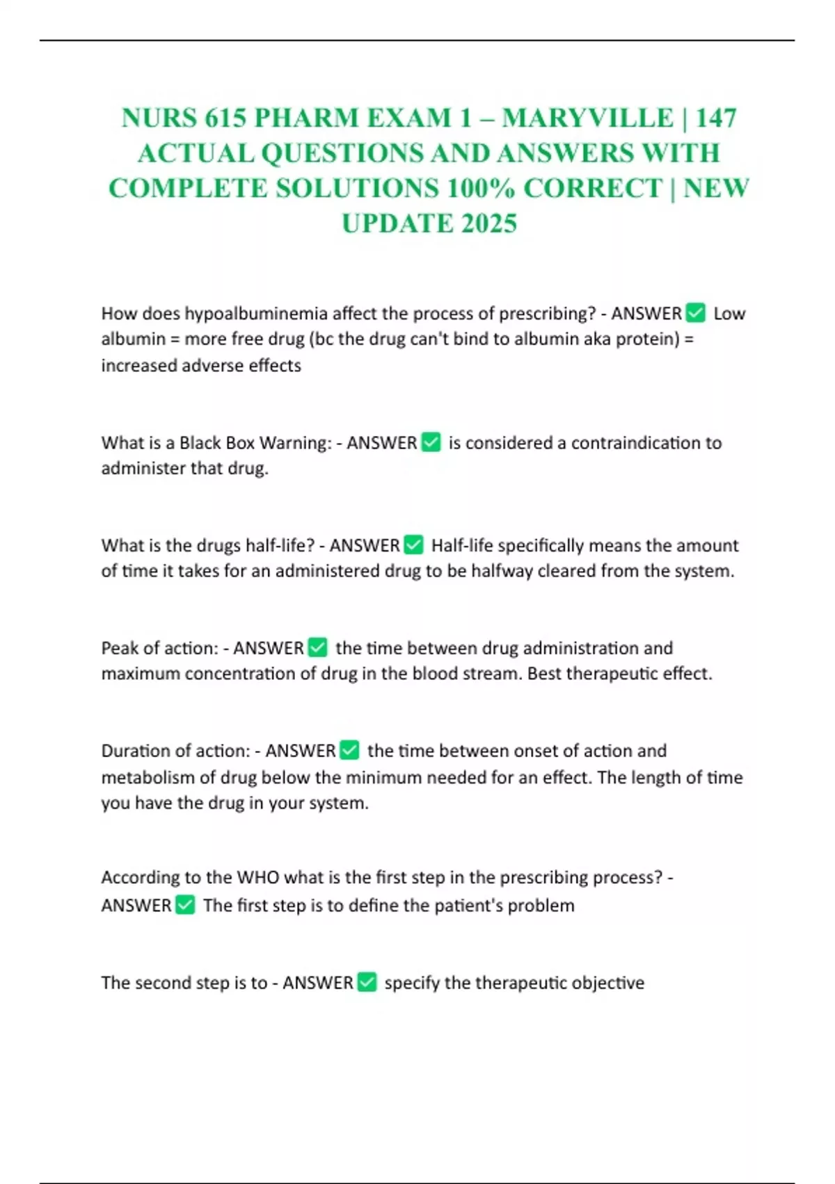 NURS 615 PHARM EXAM 1 – MARYVILLE | 147 ACTUAL QUESTIONS AND ANSWERS WITH COMPLETE SOLUTIONS 100% CORRECT | NEW UPDATE 2025