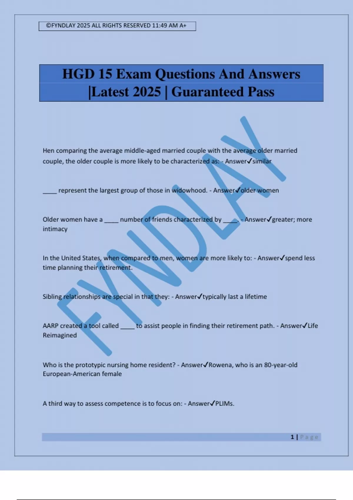 HGD 15 Exam Questions And Answers