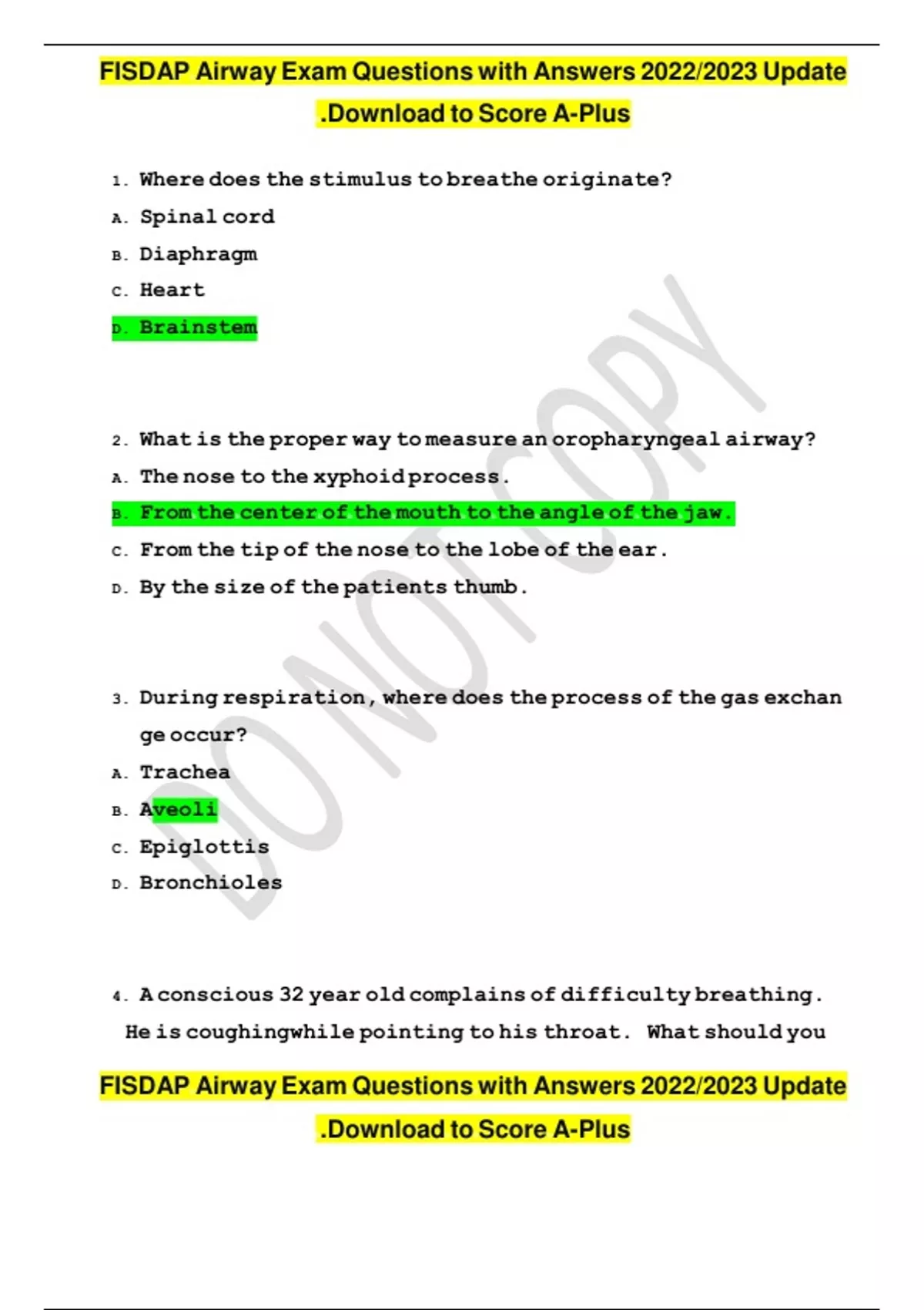 ,FISDAP Airway Exam Questions with Answers 2022/2023 Update