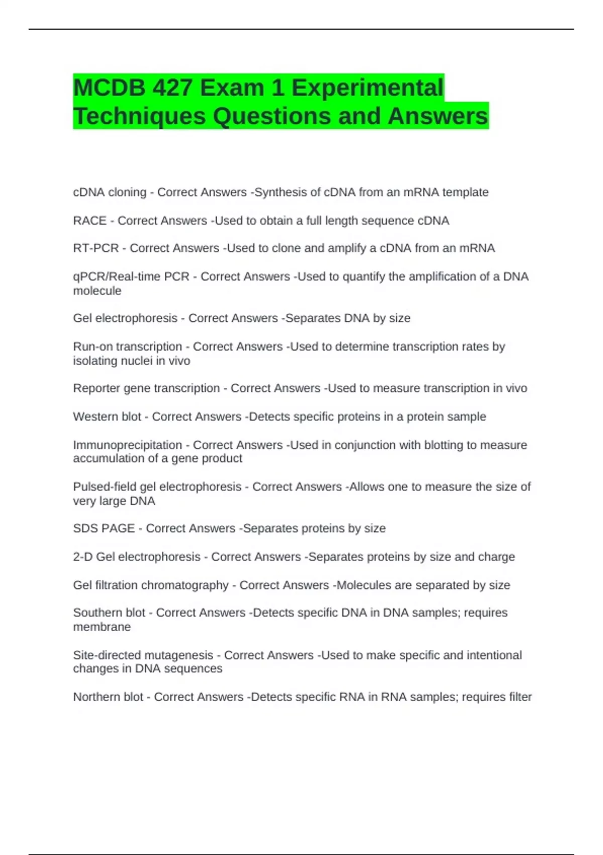 MCDB 427 Exam 1 Experimental Techniques Questions and Answers