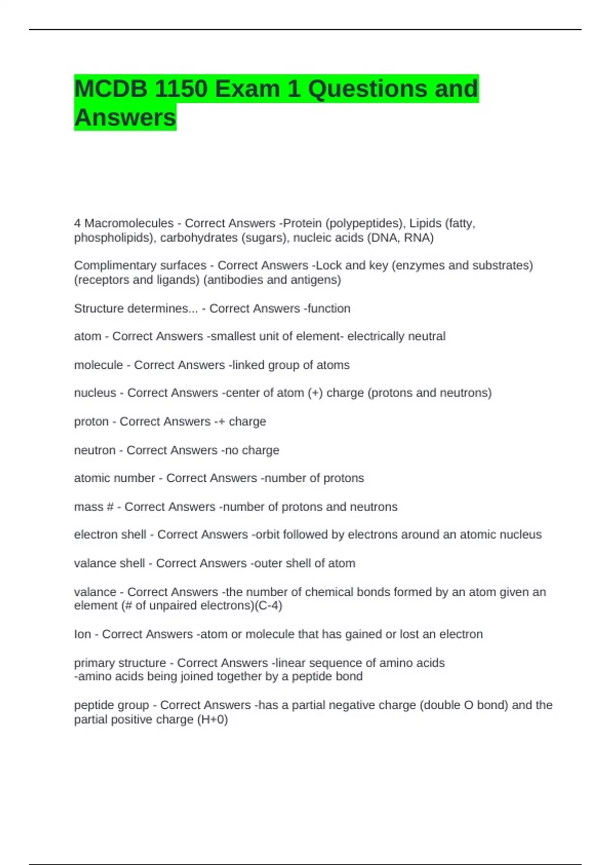 MCDB 1150 Exam 1 Questions and