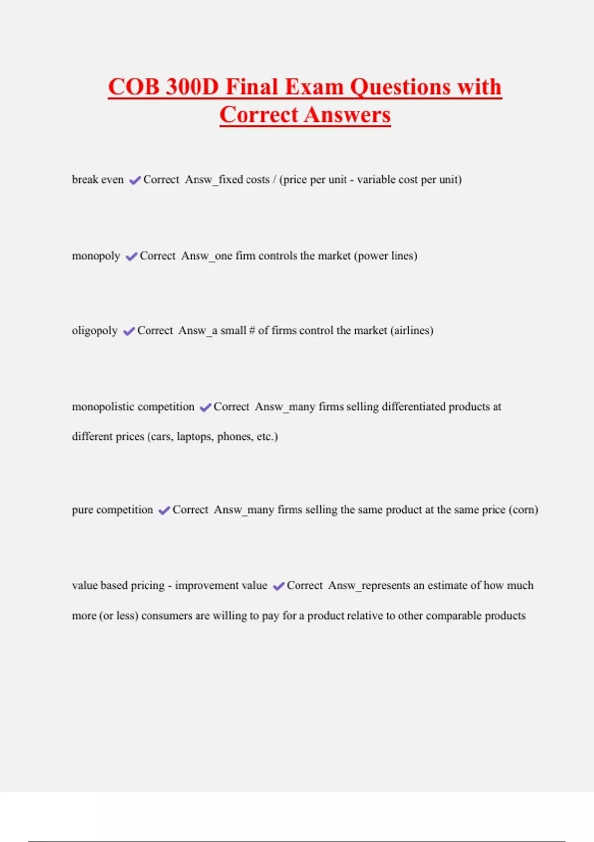 ,value based pricing - cost of ownership Correct Answ_determines the total cost of owning