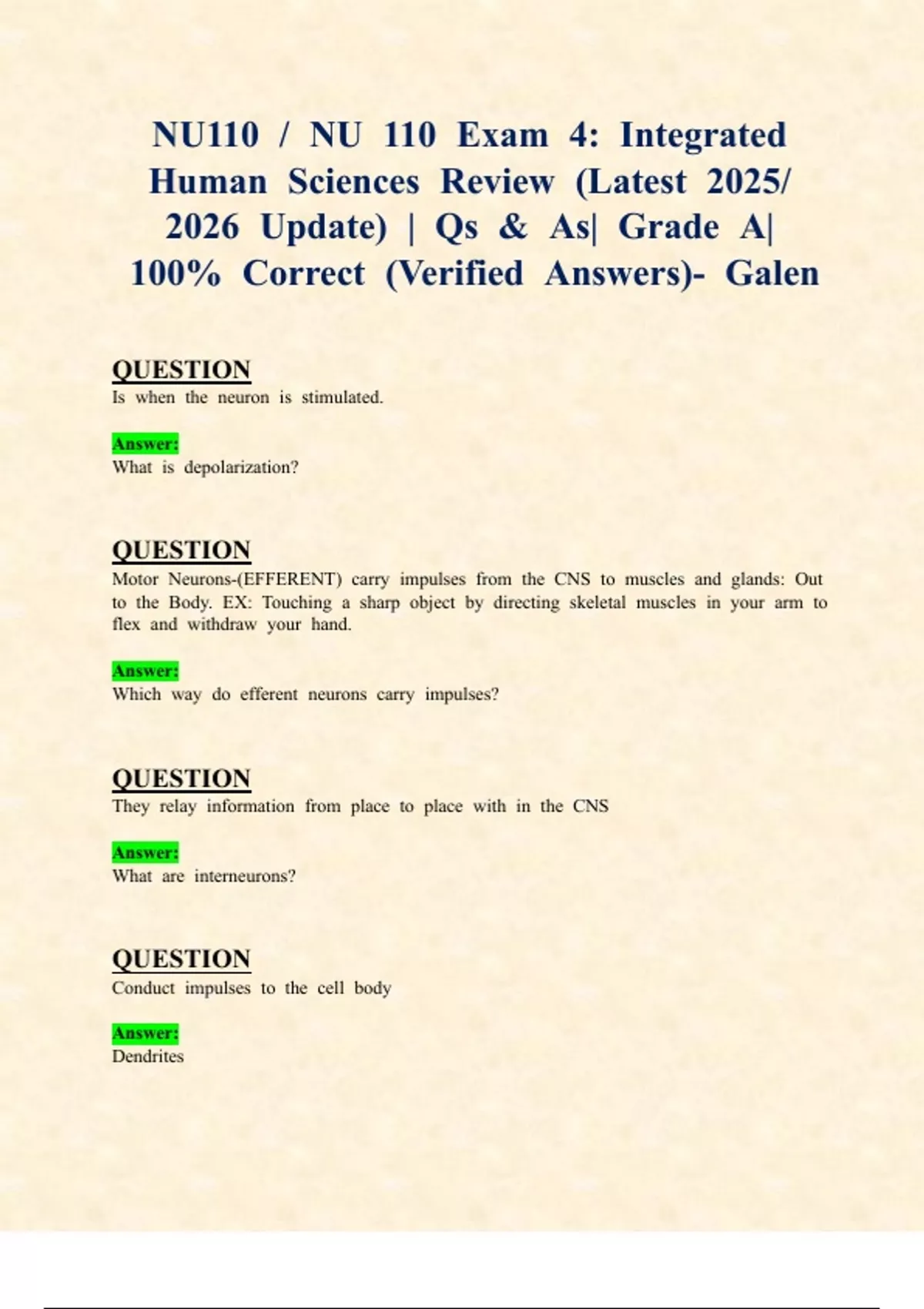 100%t Correctt (Verifiedt Answers)-t Galen