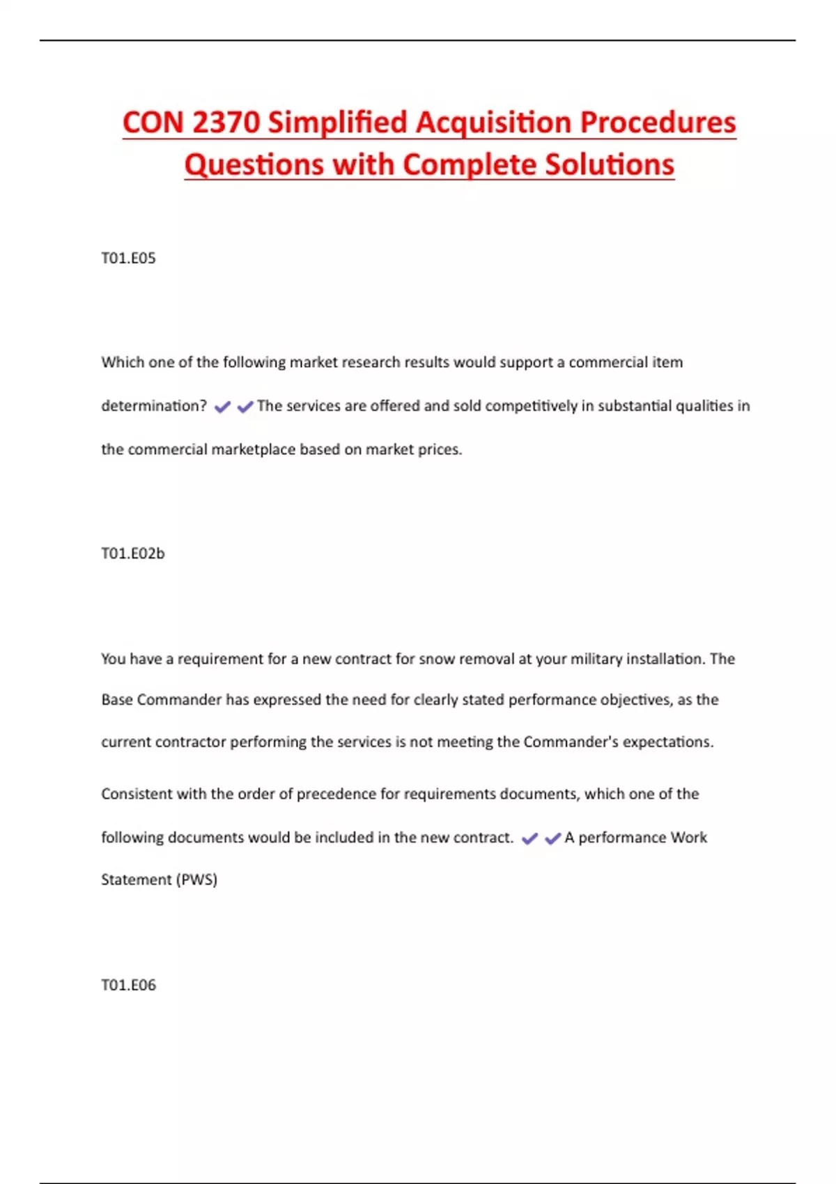 following documents would be included in the new contract. A performance Work