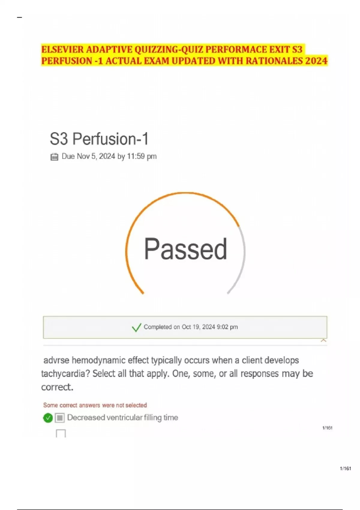ELSEVIER ADAPTIVE QUIZZING-QUIZ PERFORMACE EXIT S3 PERFUSION -1 ACTUAL EXAM UPDATED WITH RATIONALES 2024