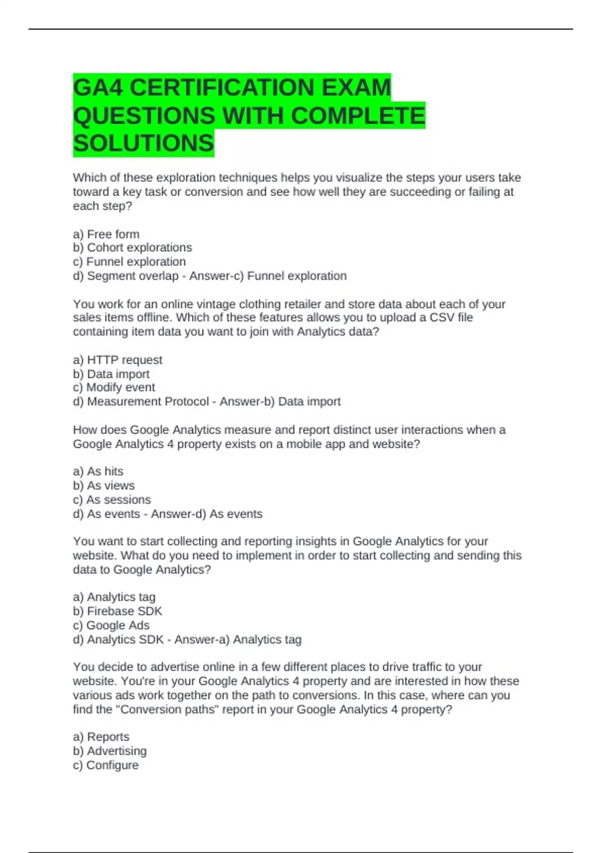 , d) Explore - Answer-b) Advertising