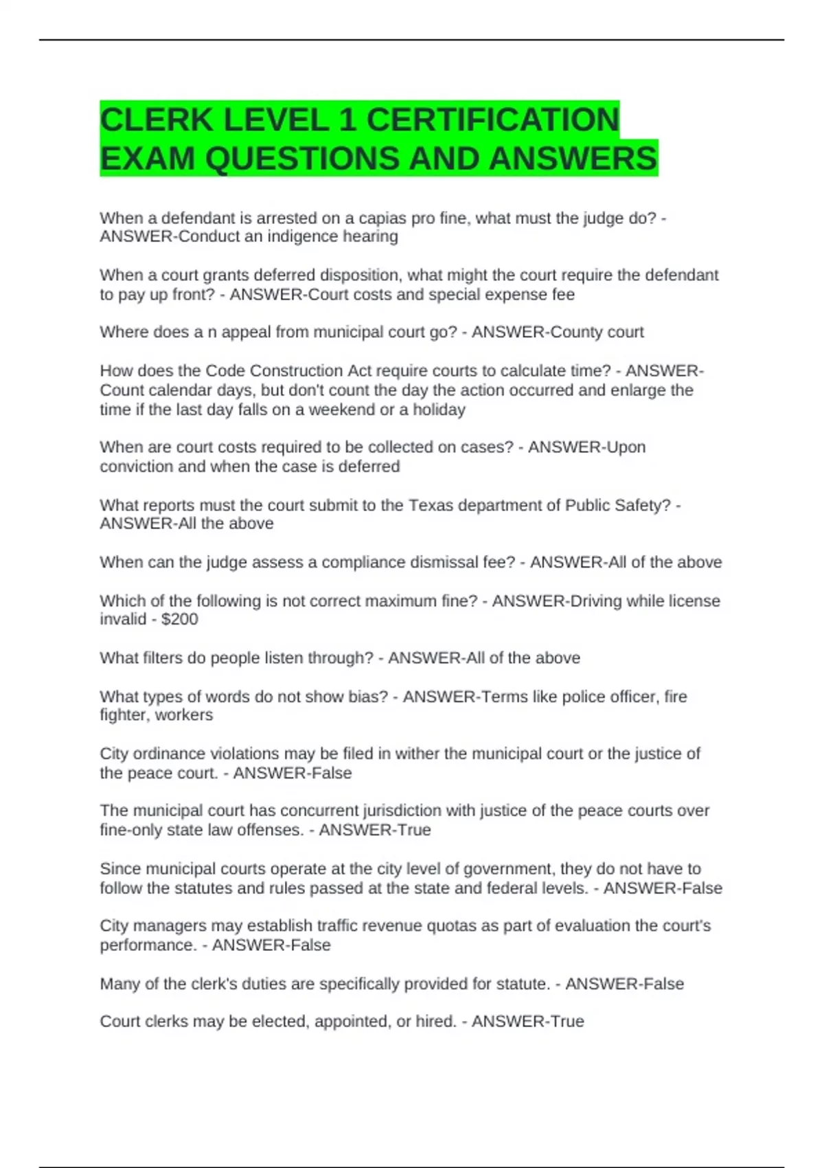 Many of the clerk's duties are specifically provided for statute. - ANSWER-False