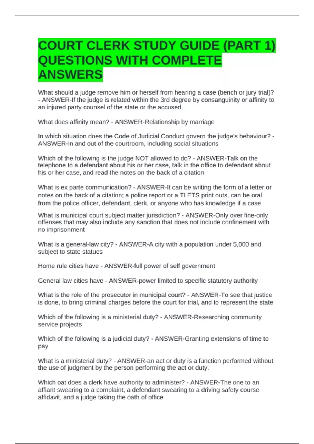 COURT CLERK STUDY GUIDE (PART 1)