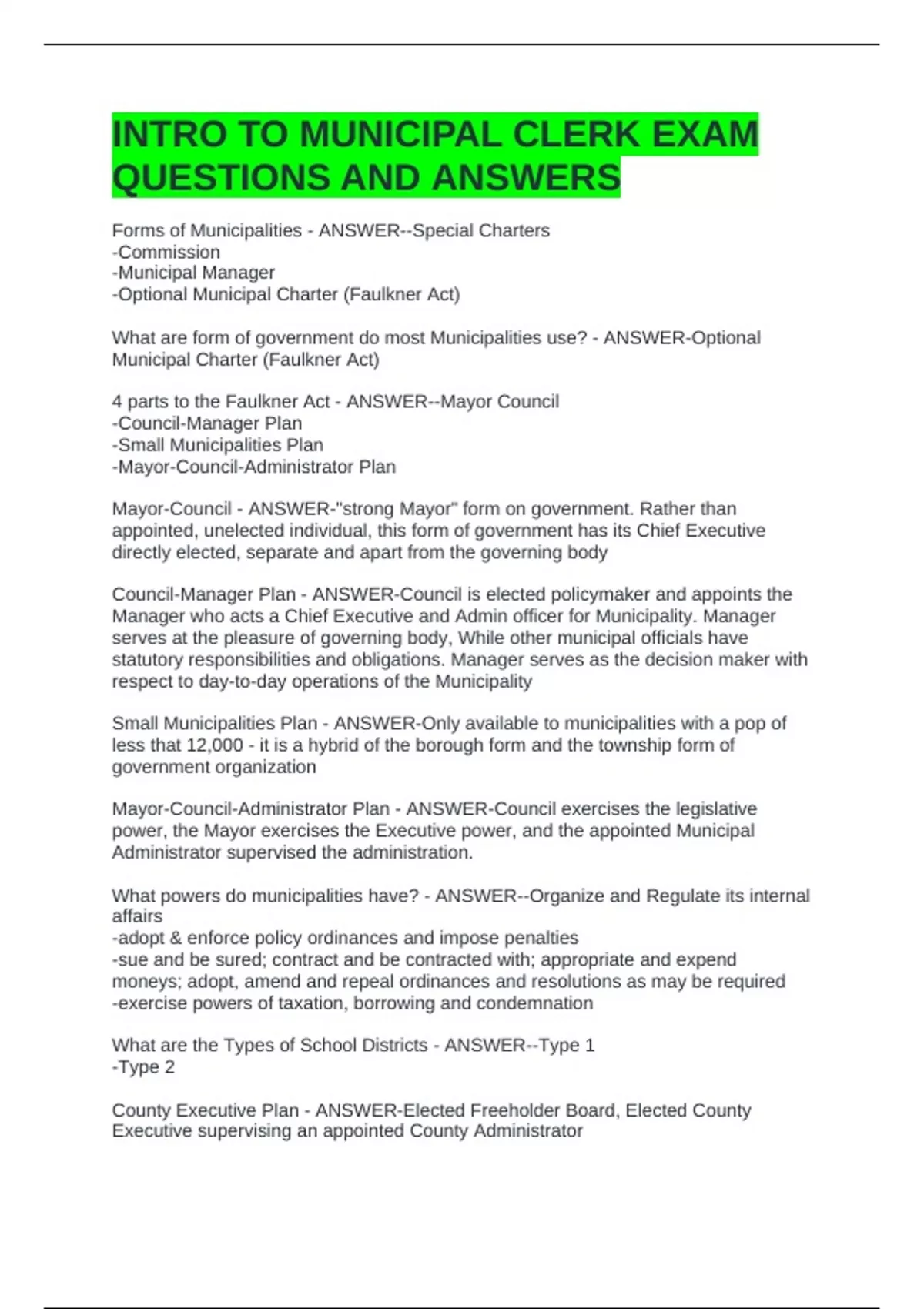 INTRO TO MUNICIPAL CLERK EXAM