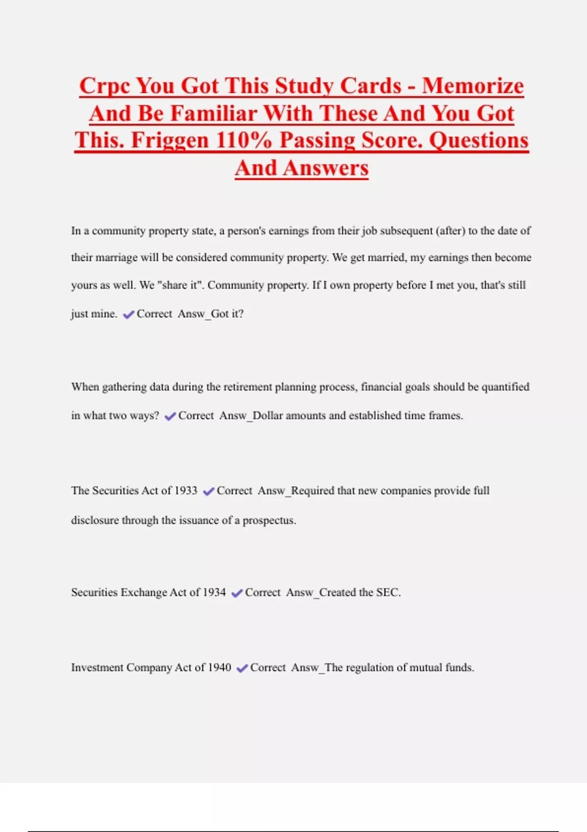 Securities Exchange Act of 1934 Correct Answ_Created the SEC.
