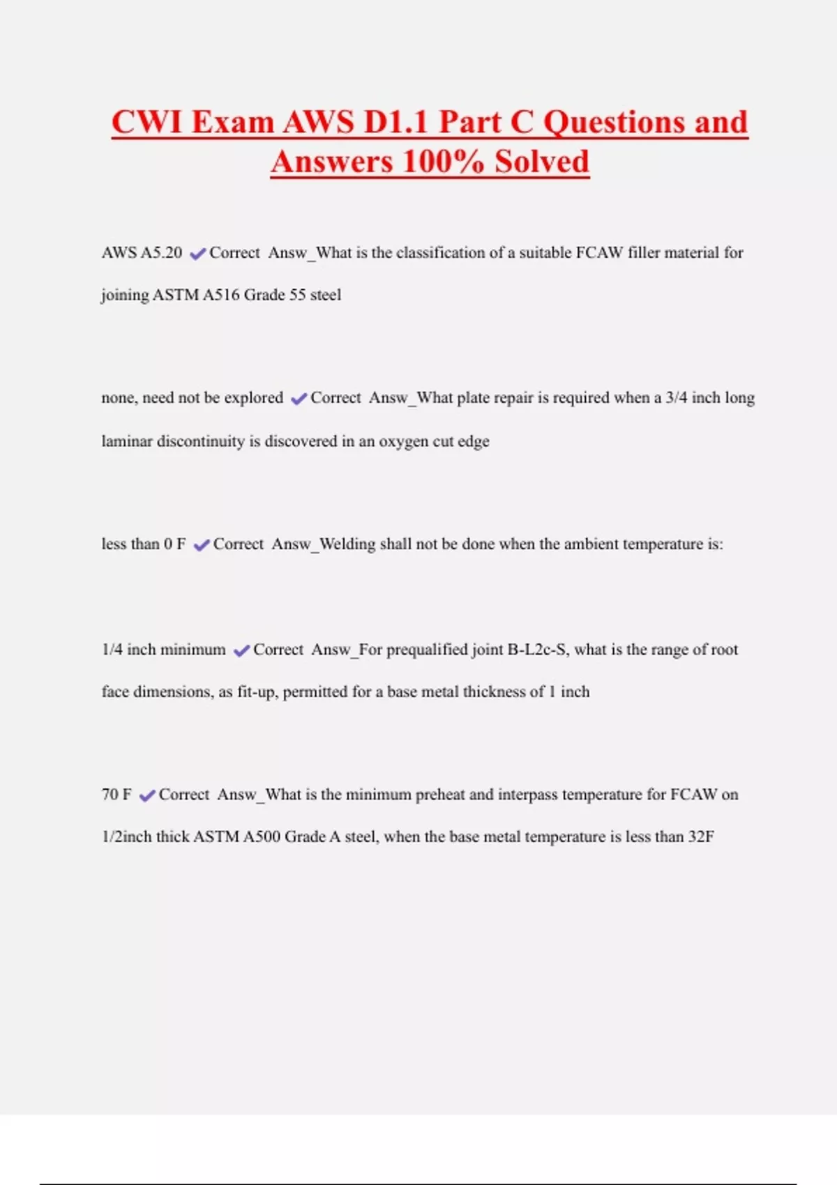 70 F Correct Answ_What is the minimum preheat and interpass temperature for FCAW on