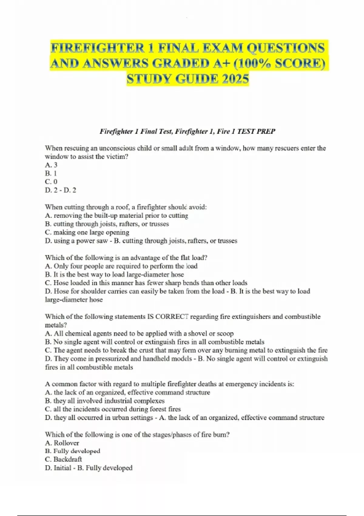 FIREFIGHTER 1 FINAL EXAM QUESTIONS AND ANSWERS GRADED A+ (100% SCORE) STUDY GUIDE 2025FIREFIGHTER 1 FINAL EXAM QUESTIONS AND ANSWERS GRADED A+ (100% SCORE) STUDY GUIDE 2025FIREFIGHTER 1 FINAL EXAM QUESTIONS AND ANSWERS GRADED A+ (100% SCORE) STUDY GUIDE 2025FIREFIGHTER 1 FINAL EXAM QUESTIONS AND ANSWERS GRADED A+ (100% SCORE) STUDY GUIDE 2025FIREFIGHTER 1 FINAL EXAM QUESTIONS AND ANSWERS GRADED A+ (100% SCORE) STUDY GUIDE 2025