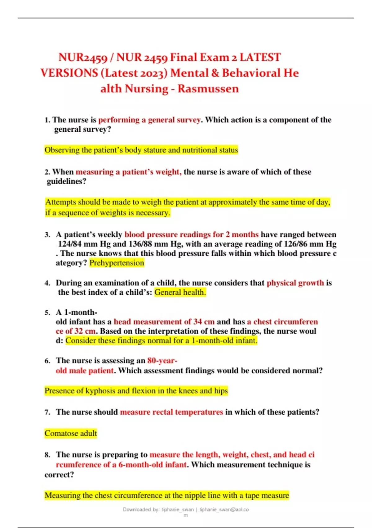 NUR2459 / NUR 2459 Final Exam 2 LATEST