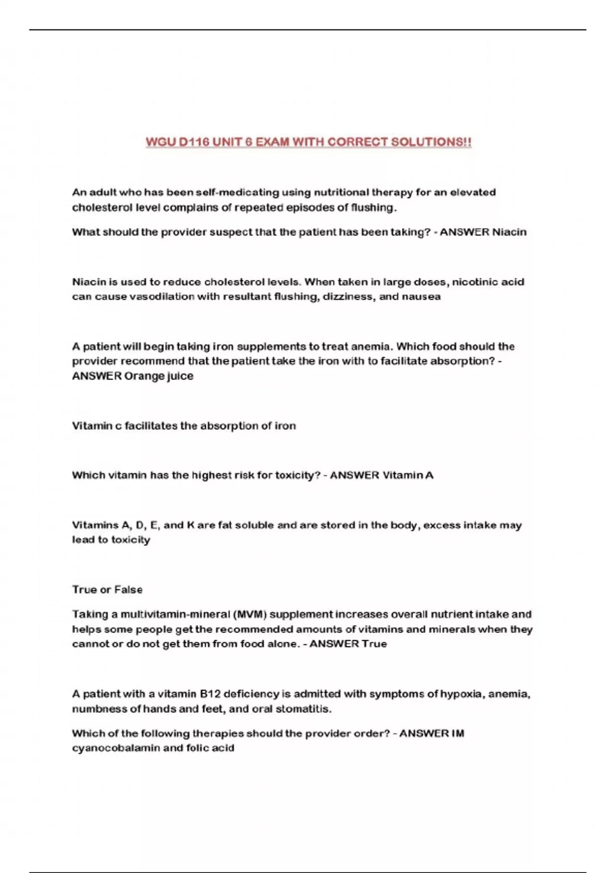 WGU D116 UNIT 6 EXAM WITH CORRECT SOLUTIONS!!...