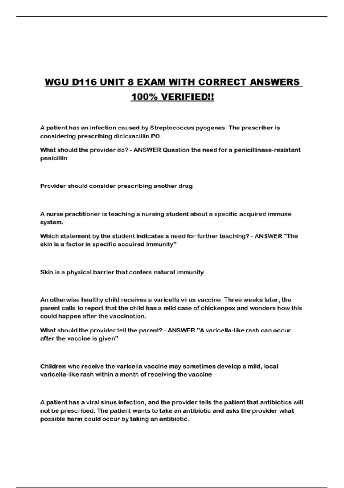ALL WGU D116 PACKAGED EXAMS!!