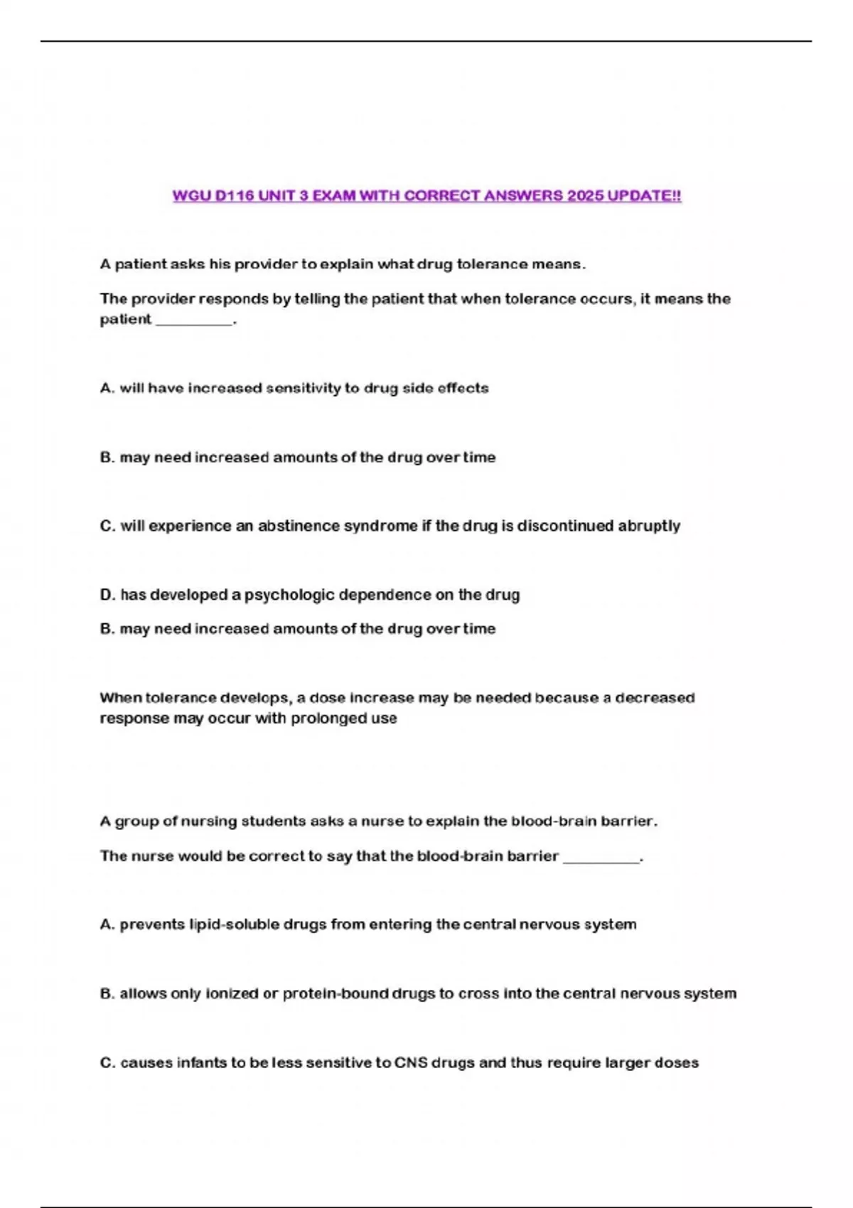WGU D116 UNIT 3 EXAM WITH CORRECT ANSWERS 2025 UPDATE!!...