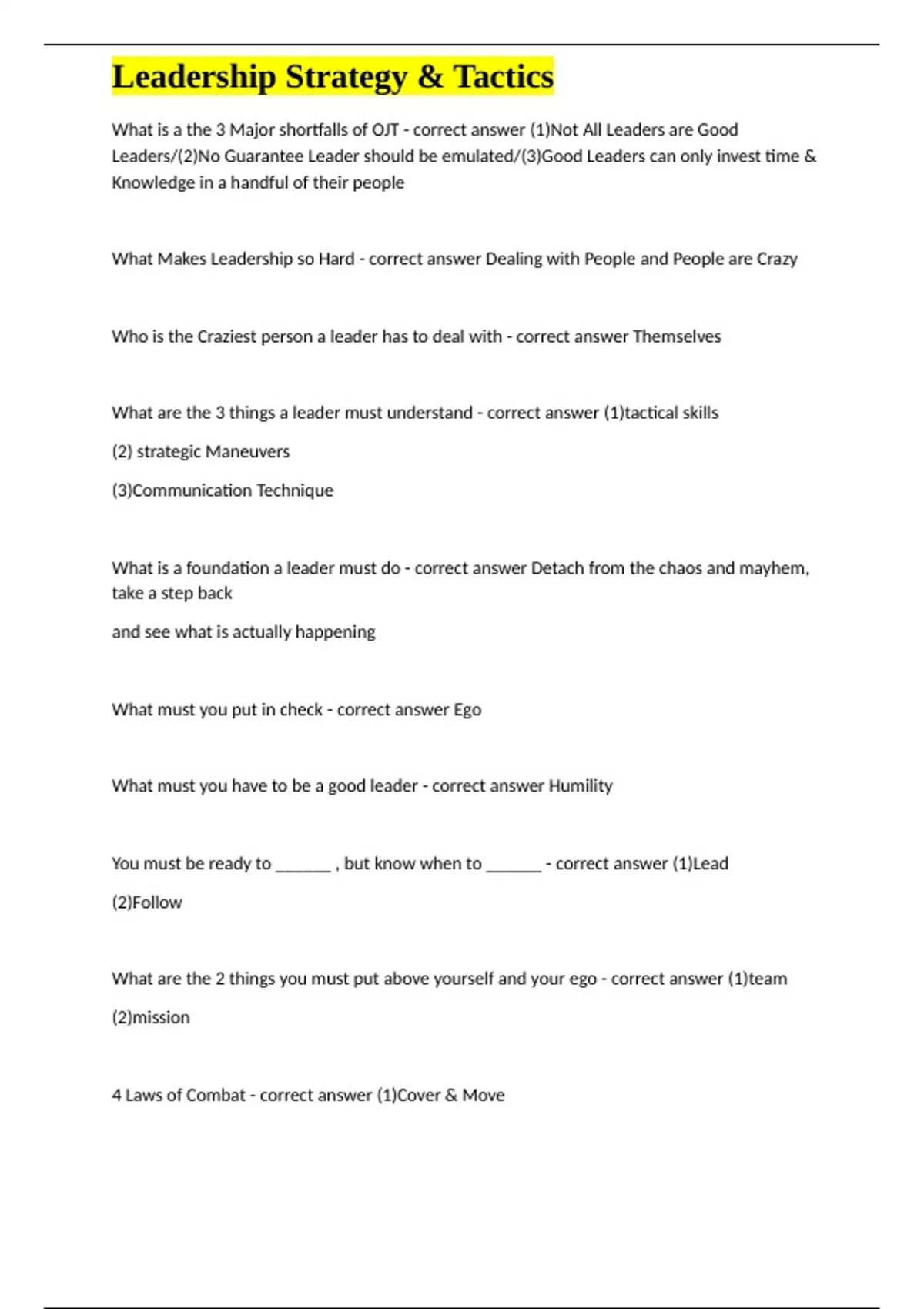 What is a the 3 Major shortfalls of OJT - correct answer (1)Not All Leaders are Good