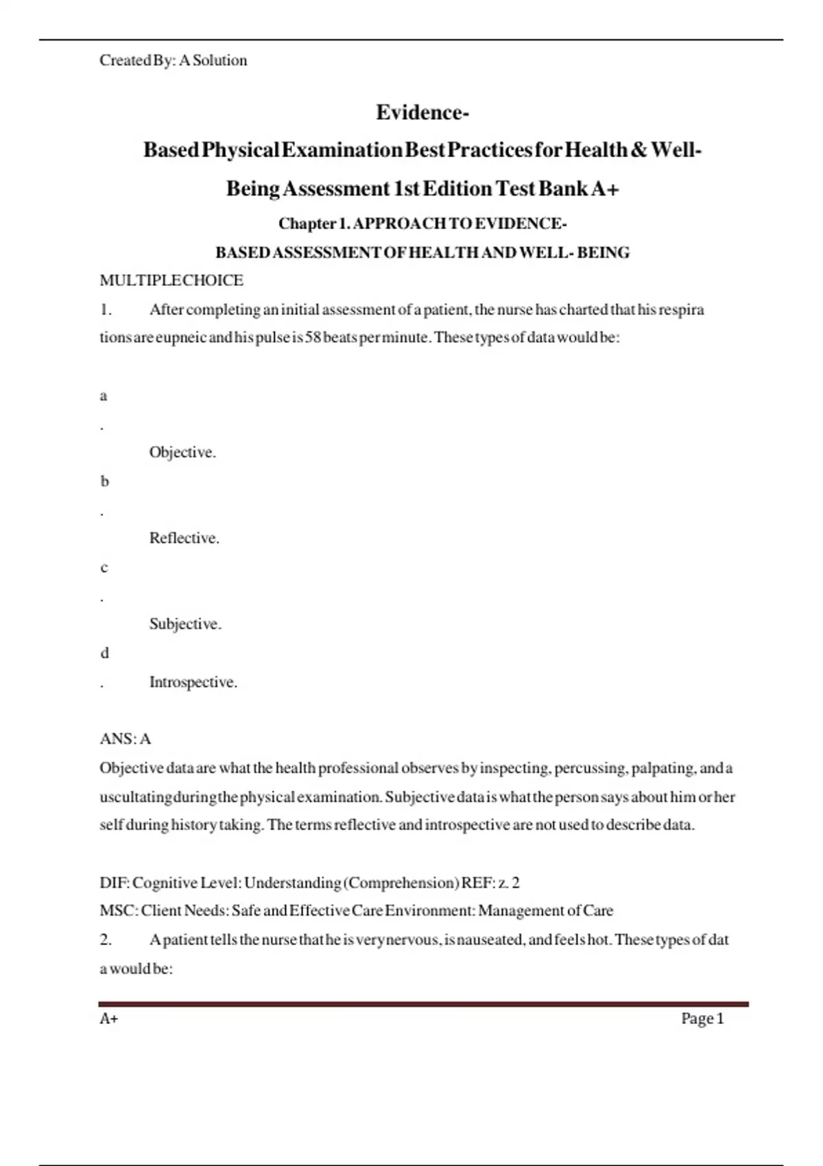 Being Assessment 1st Edition Test Bank A+ jh jh jh jh jh jh