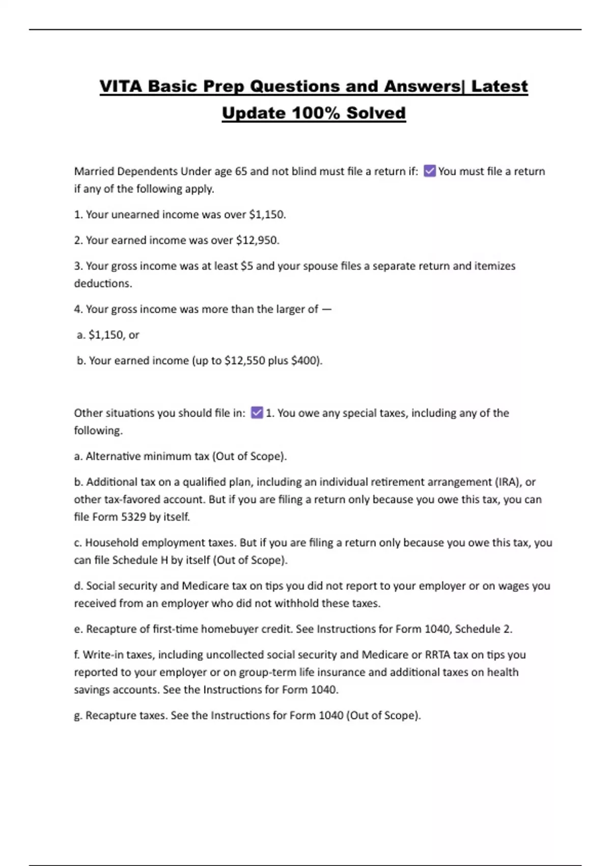 Other situations you should file in: 1. You owe any special taxes, including any of the