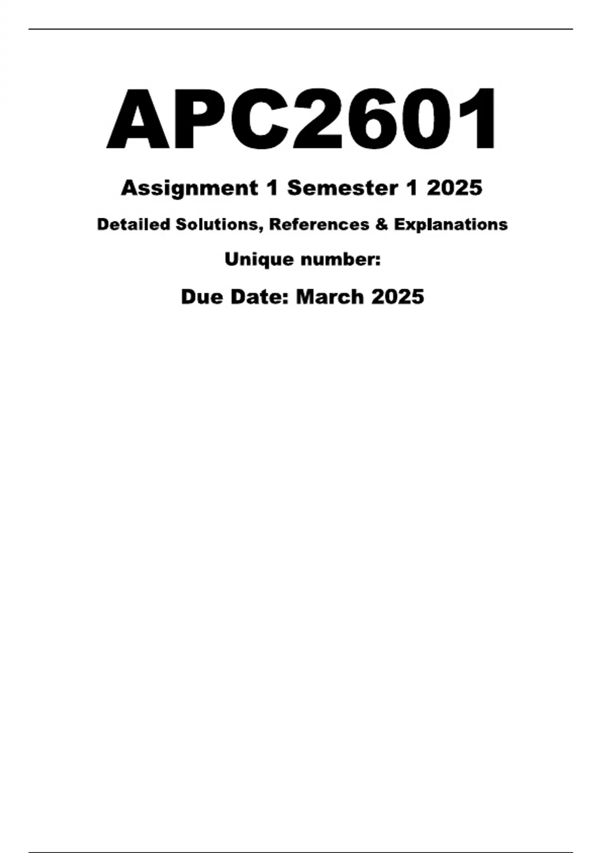 APC2601 Assignment 1, Semester 1 2025 - DUE March 2025.
