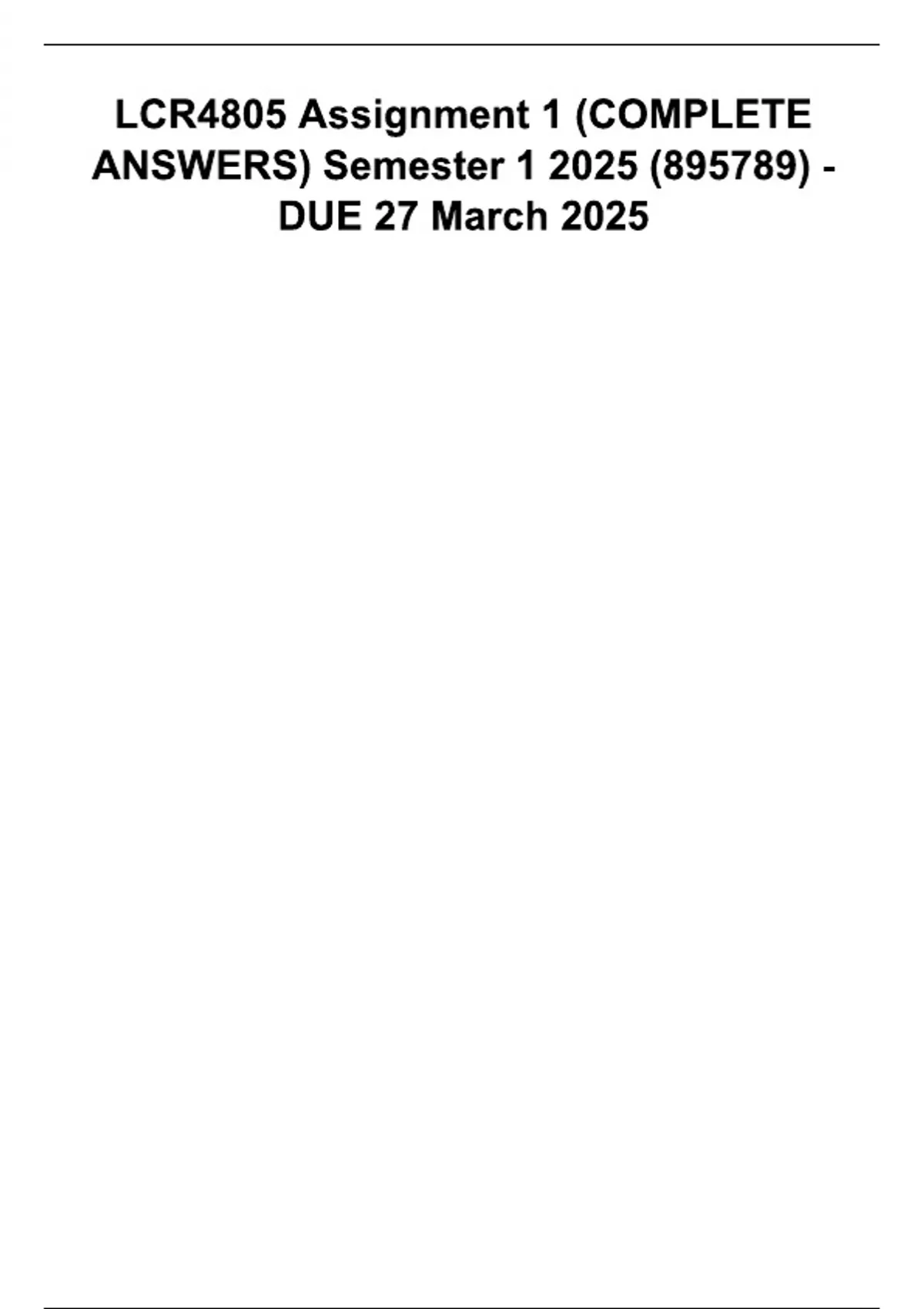 LCR4805 Assignment 1 (COMPLETE ANSWERS) Semester 1 2025 (895789) - DUE 27 March 2025.