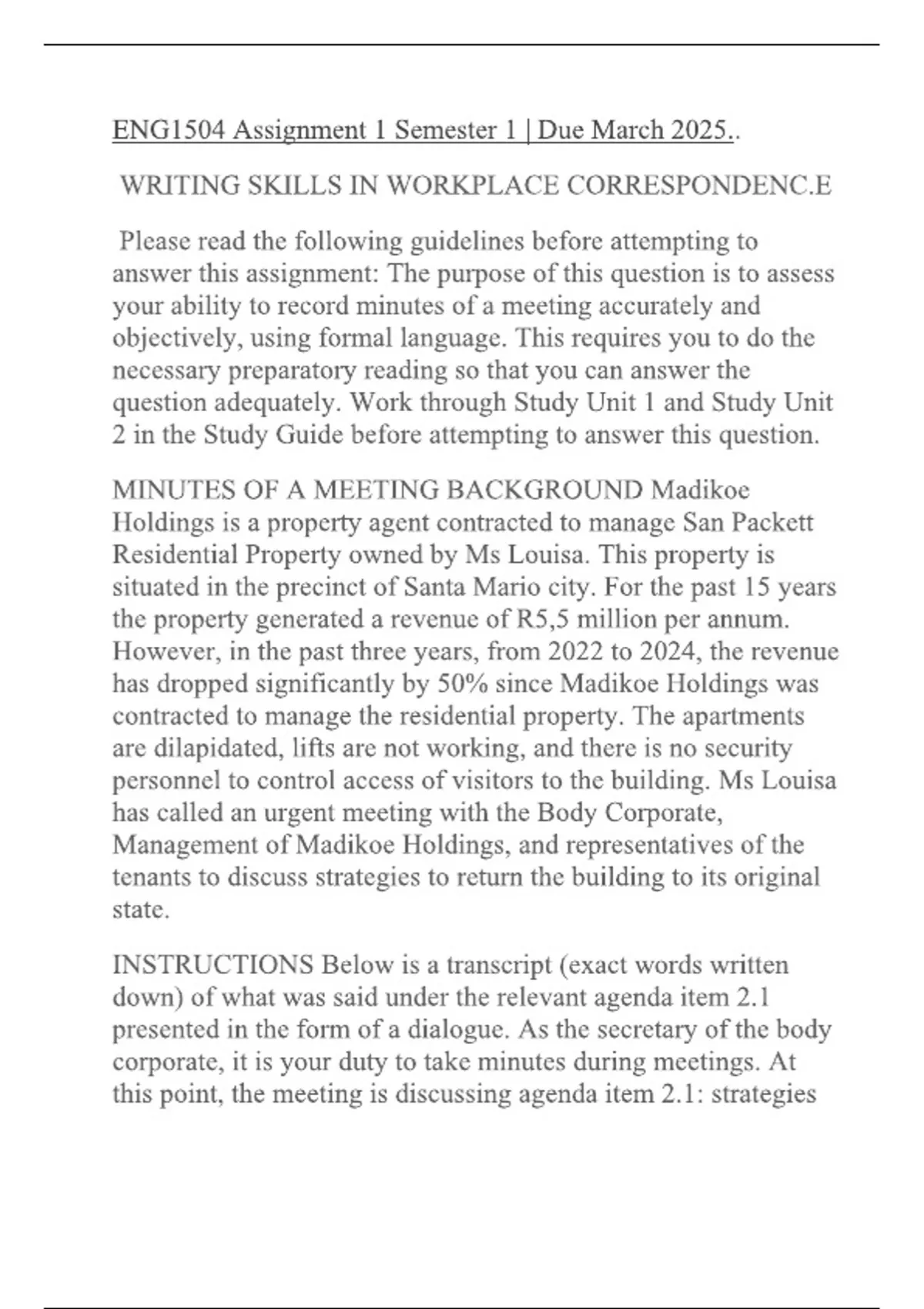 ENG1504 Assignment 1 (COMPLETE ANSWERS) Semester 1 2025 - DUE March 2025