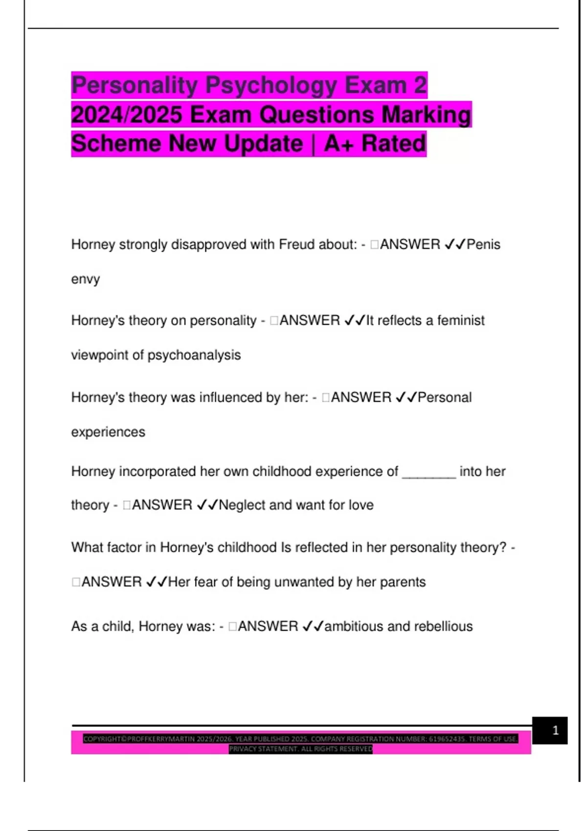 Horney's theory on personality - 🧠ANSWER ✔✔It reflects a feminist